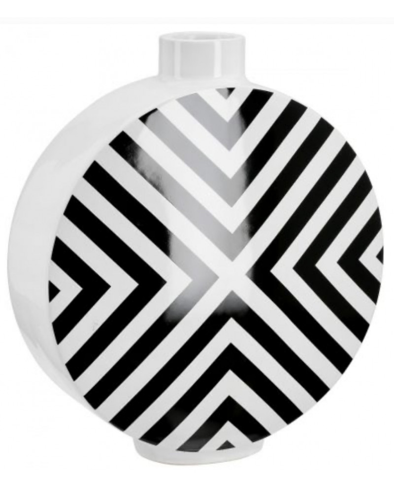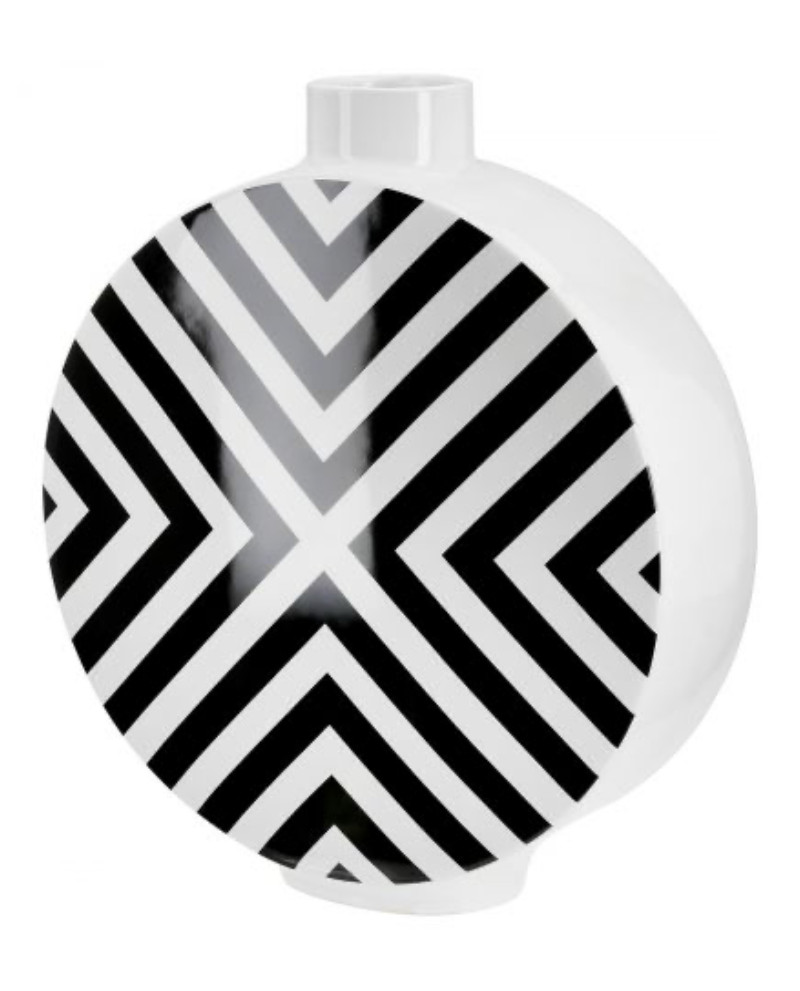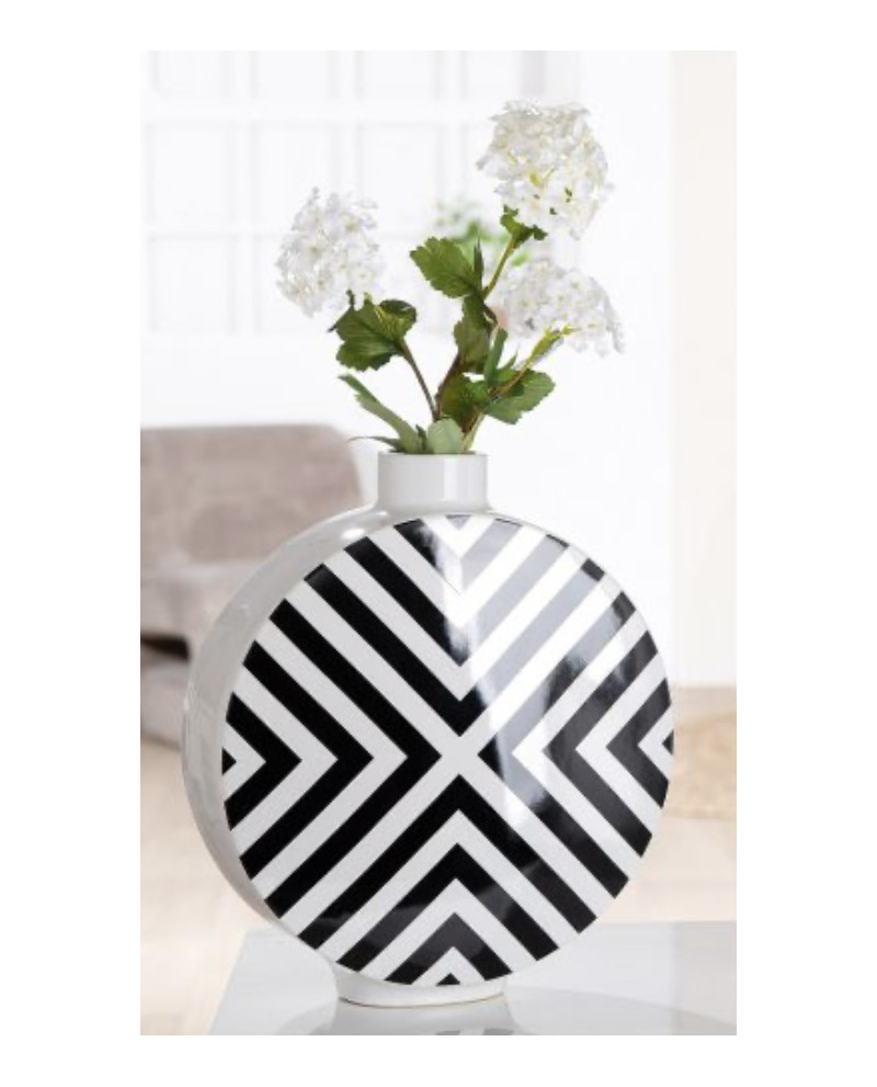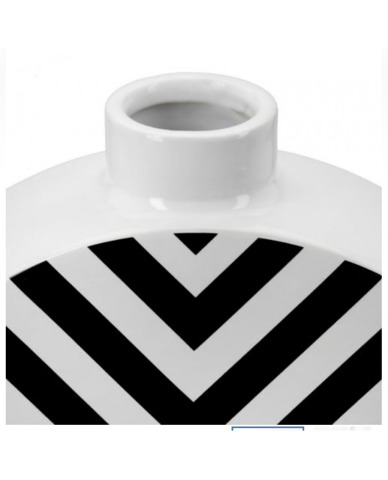 Vase à couvercle rond, motif chevron, en céramique.