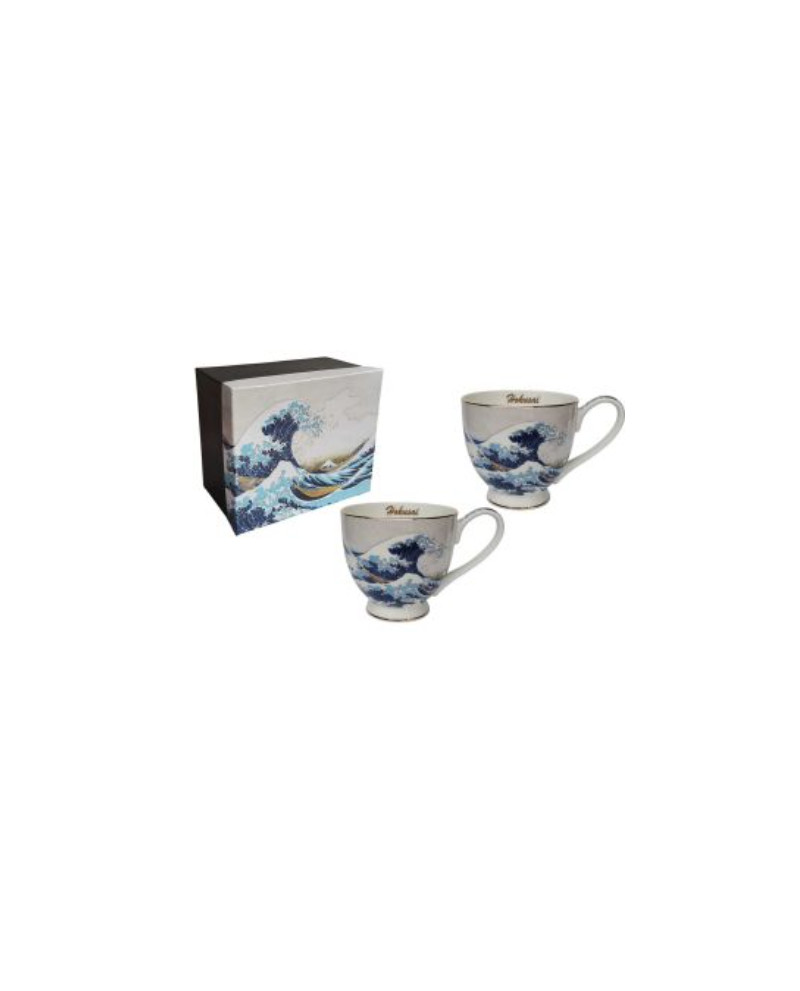 La collection d'art de la table HOKUSAI rend hommage à l'oeuvre du peintre japonais, représentant une grande vague. Ce coffret comprend 2 tasses de 500ml qui reprennent ce beau décor pour un effet décoratif élégant. Boîte cadeau incluse, pour le plaisir d'offrir. Possible de passer au micro-ondes et lave-vaisselle.