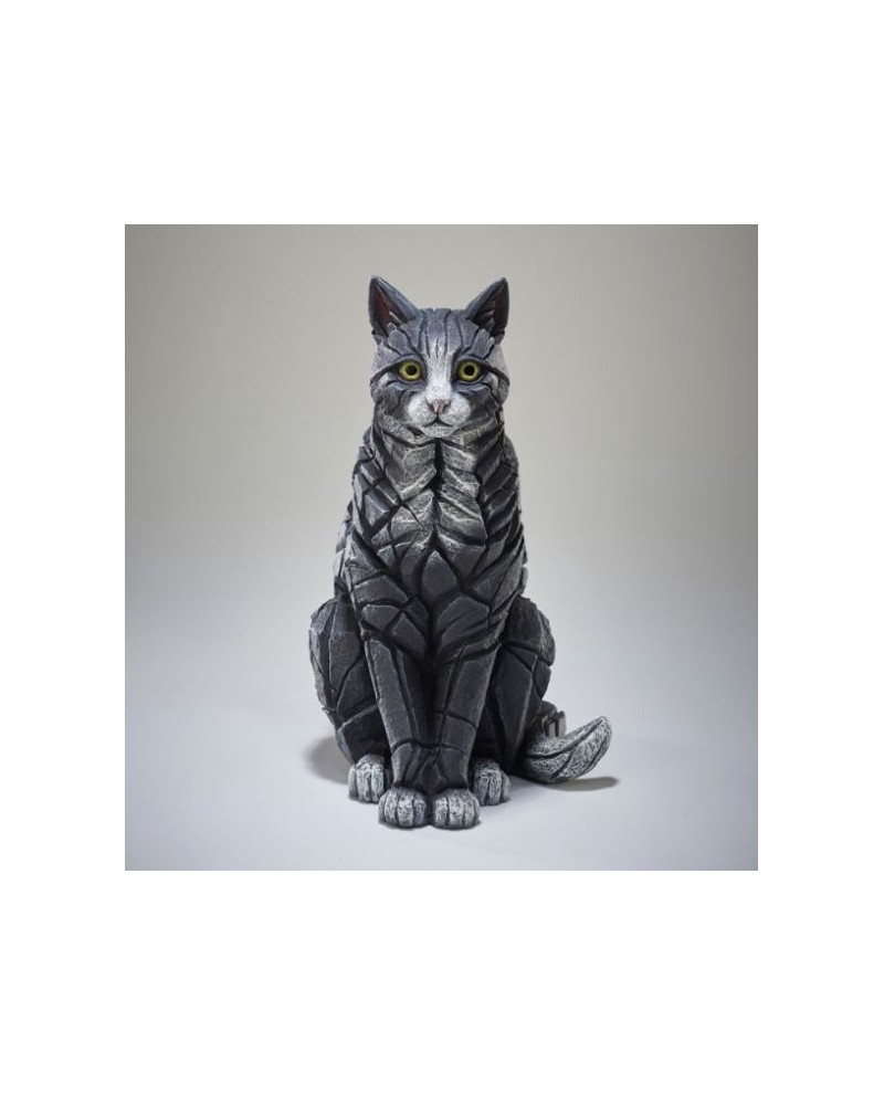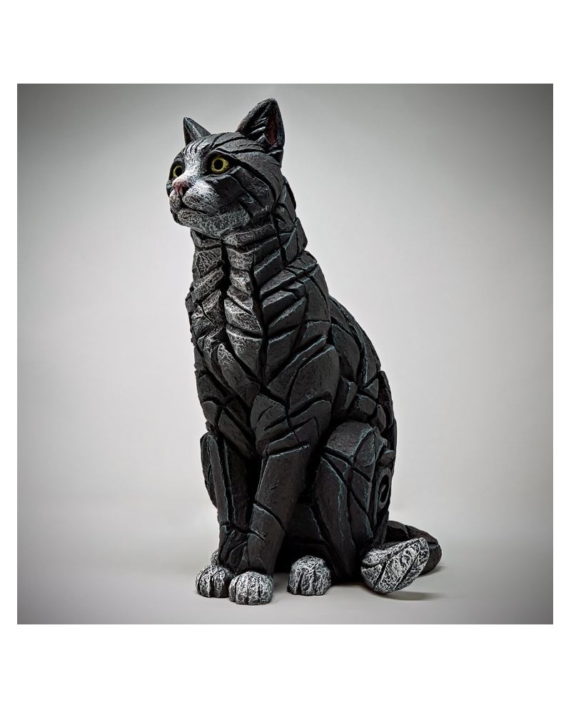 Sculpture Chat assis en alliage de résine et d'argile sculptée main