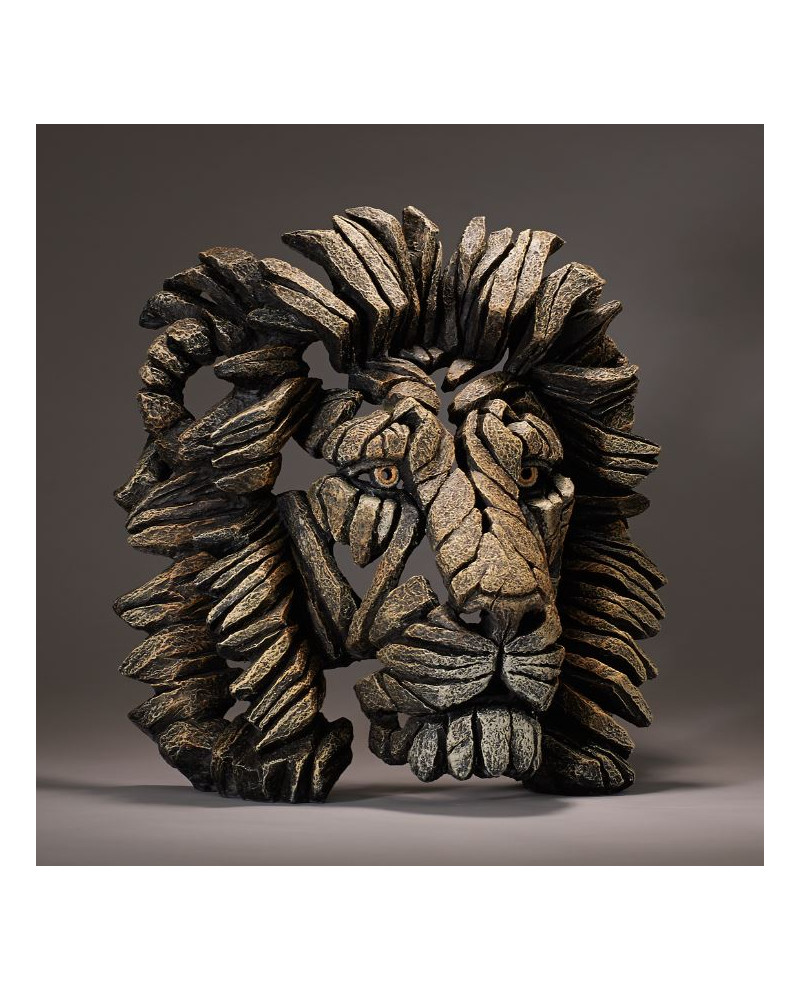 Sculpture Buste de Lion en alliage de résine et d'argile sculptée main