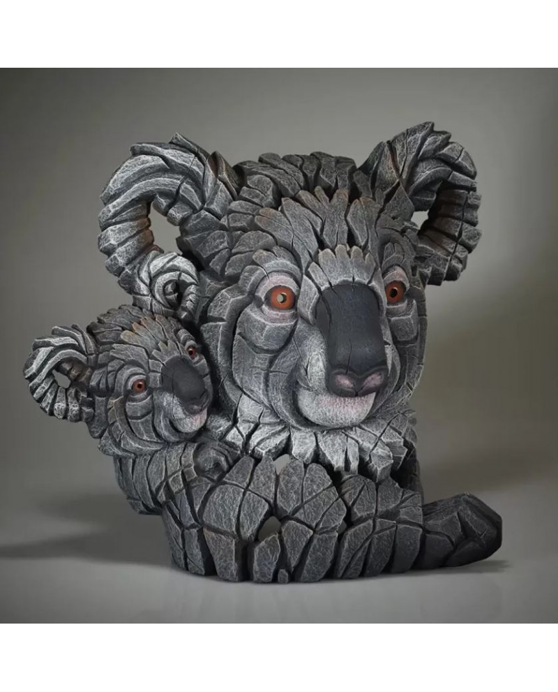 Sculpture Buste de Koala et son petit en alliage de résine et d'argile sculptée main.