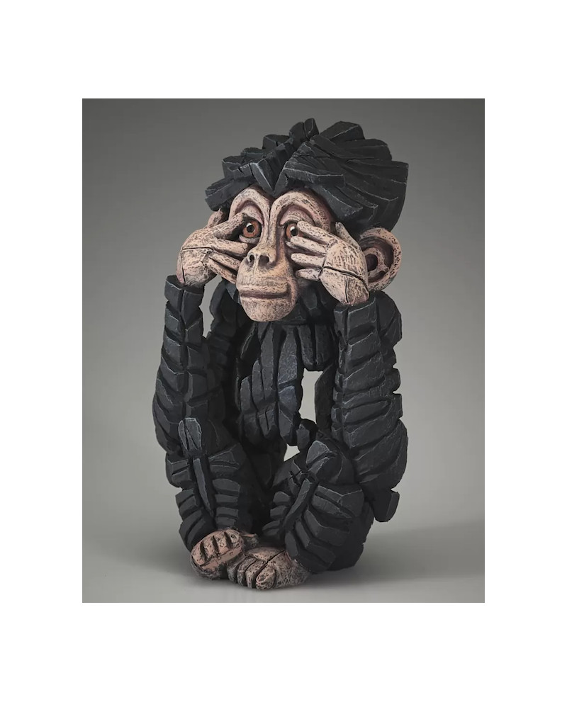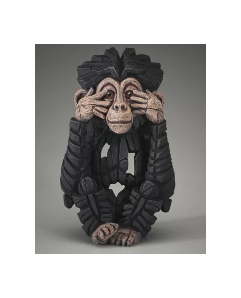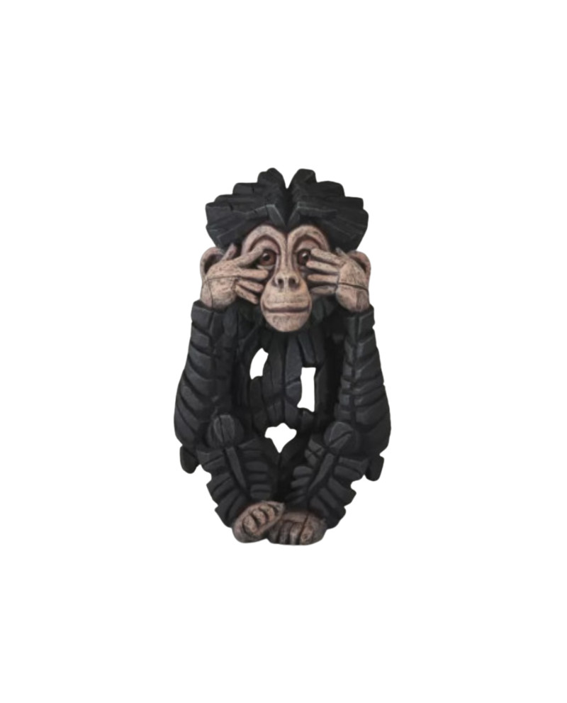 Sculpture d'un chimpanzé "See No Evil", en alliage de résine et d'argile sculptée main.