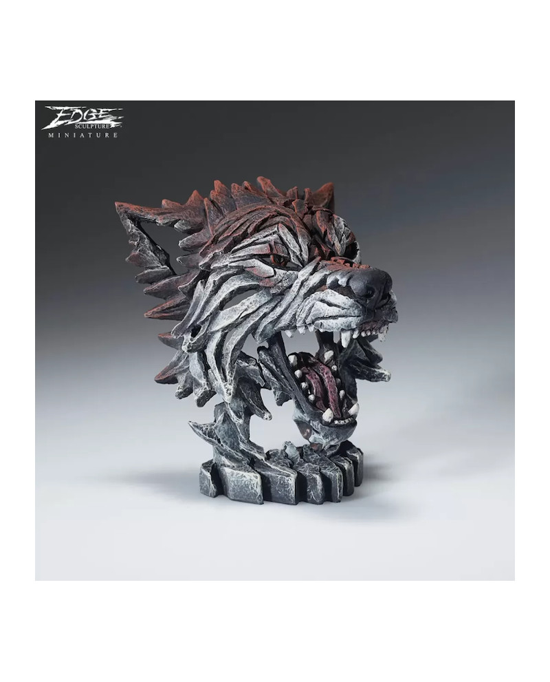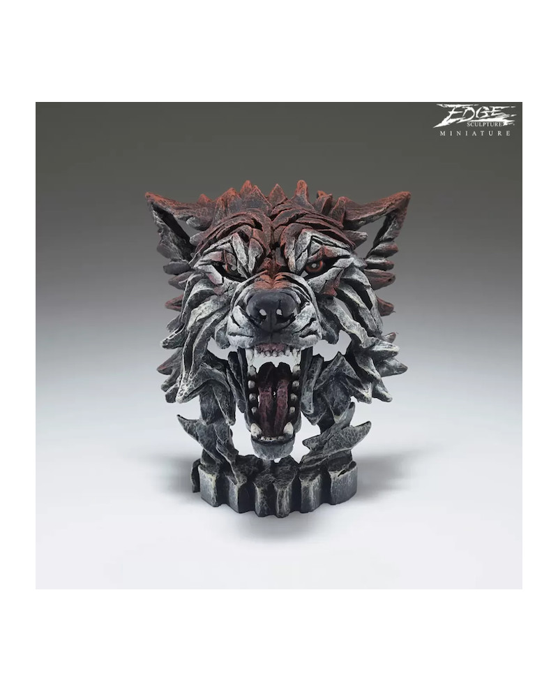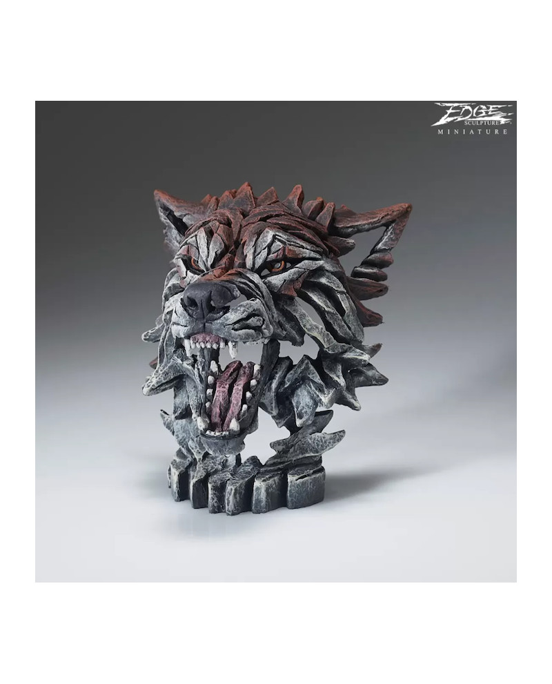 Sculpture Buste de Loup en alliage de résine et d'argile sculptée main