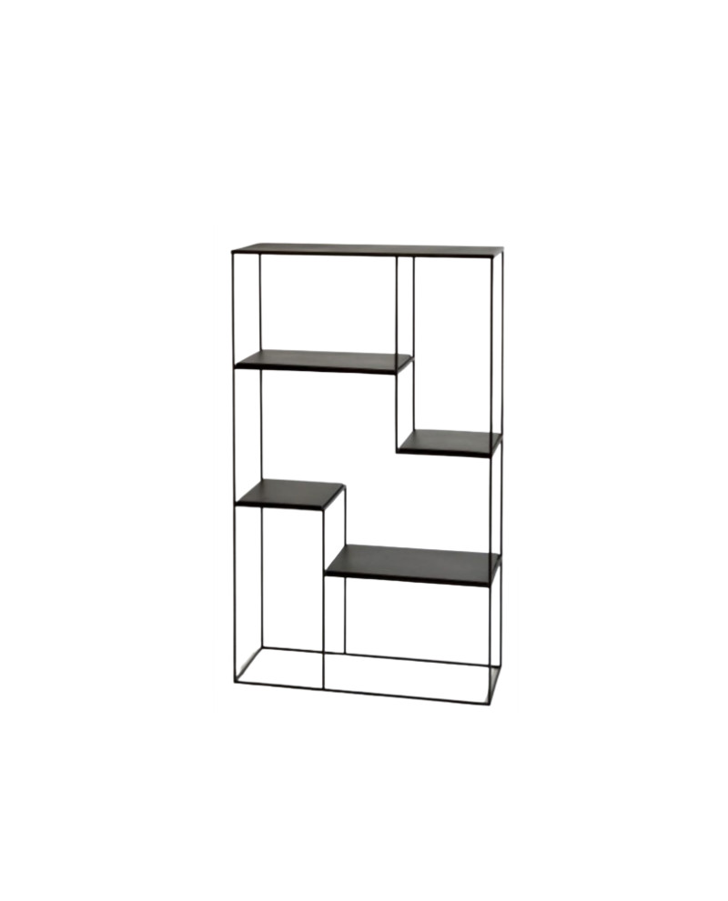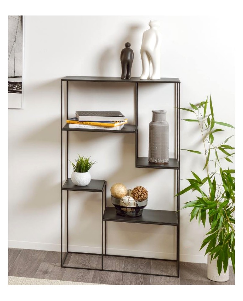 Meuble étagère épurée structure et tablette en métal gris anthracite.