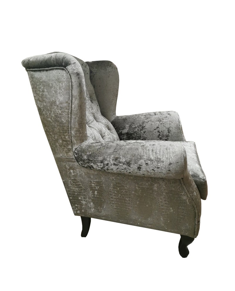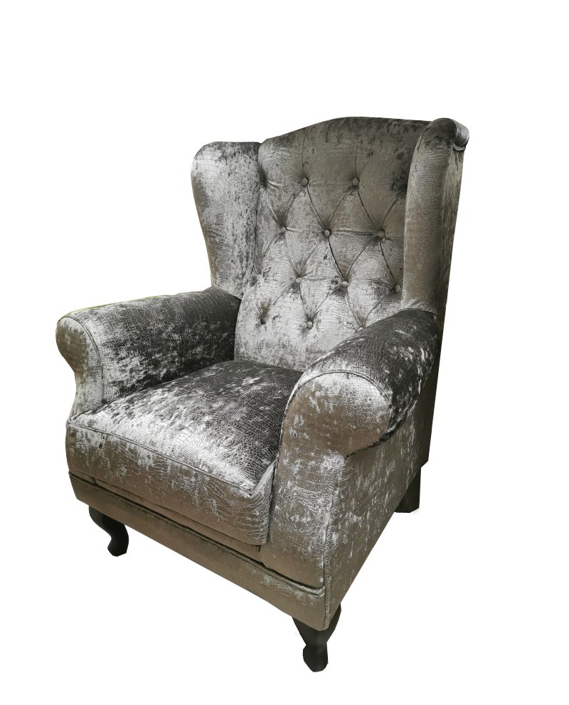 Très beau fauteuil capitonné, mousse polyuréthane HR, structure en pin massif, piètement hêtre.