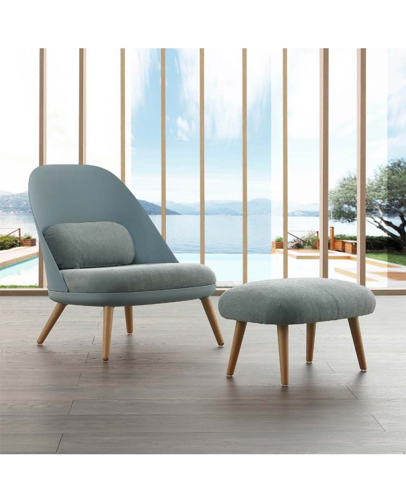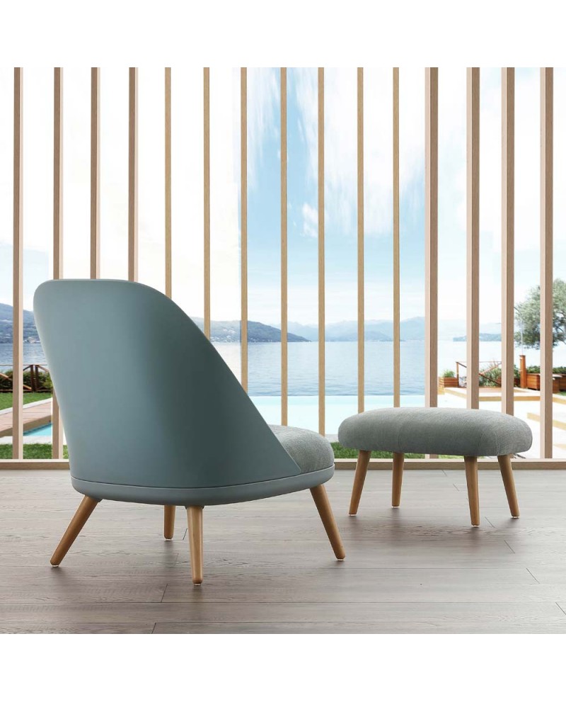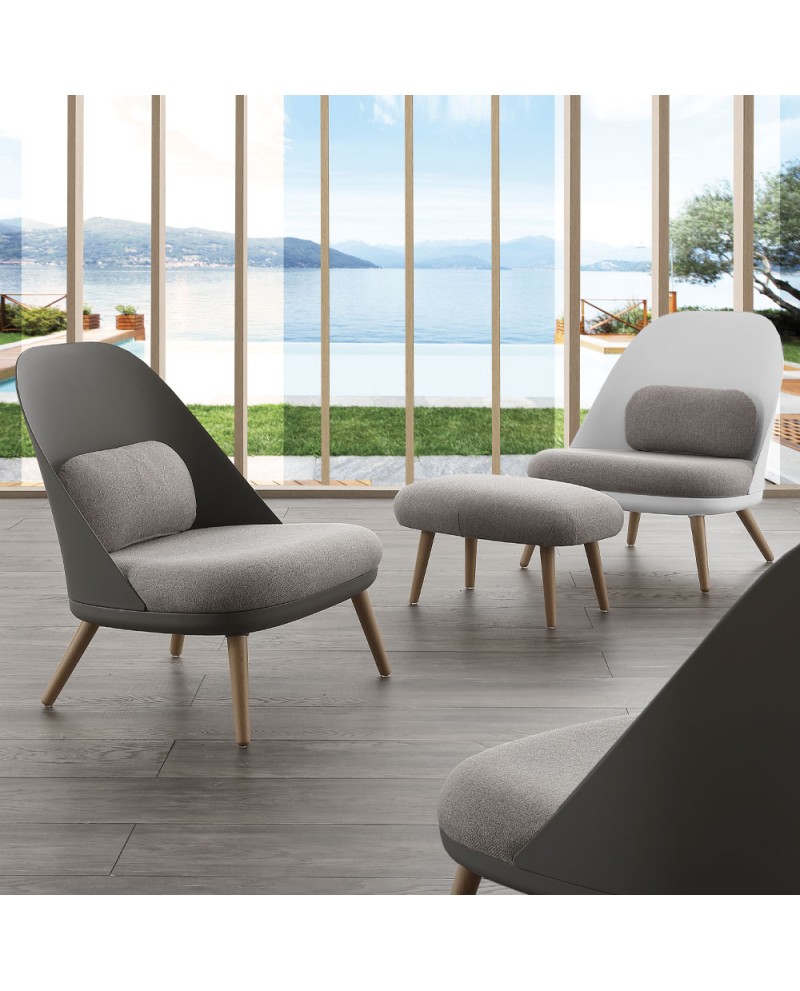 Fauteuil structure en polypropylène et hêtre naturel, assise en tissu.