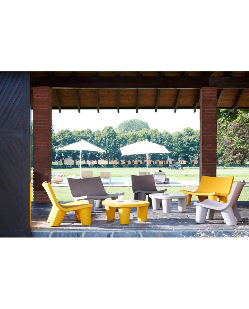 Low Lita Love est le nouveau grand fauteuil double SLIDE de Paola Navone. Le design, fin et épuré pour le dossier et l’assise, contraste avec les quatre pieds importants qui le soutiennent et qui lui confèrent une solidité formelle et fonctionnelle. Le profil légèrement incurvé de la base, qui développe la zone de support vers l’extérieur, rend ce fauteuil particulièrement invitant et confortable. Pratique, il s'intègrera facilement dans les jardins et les terrasses.