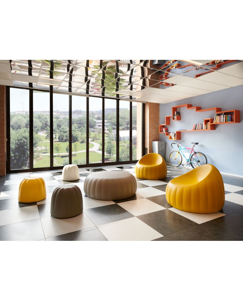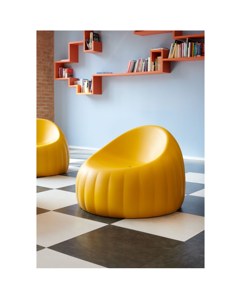 Né de l’imagination et de la connaissance approfondie des matériaux du designer Roberto Paoli, Gelée Lounge est le fauteuil qui intègre la collection Gelée entièrement en polyuréthane souple. Comme le pouf Gelée, il rappelle également la forme des bonbons gélifiés, mais avec l’ajout d’un dossier confortable. La douceur et la forme enveloppante du Gelée Lounge vous invitent à le « goûter » au premier coup d’œil.