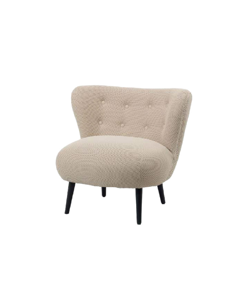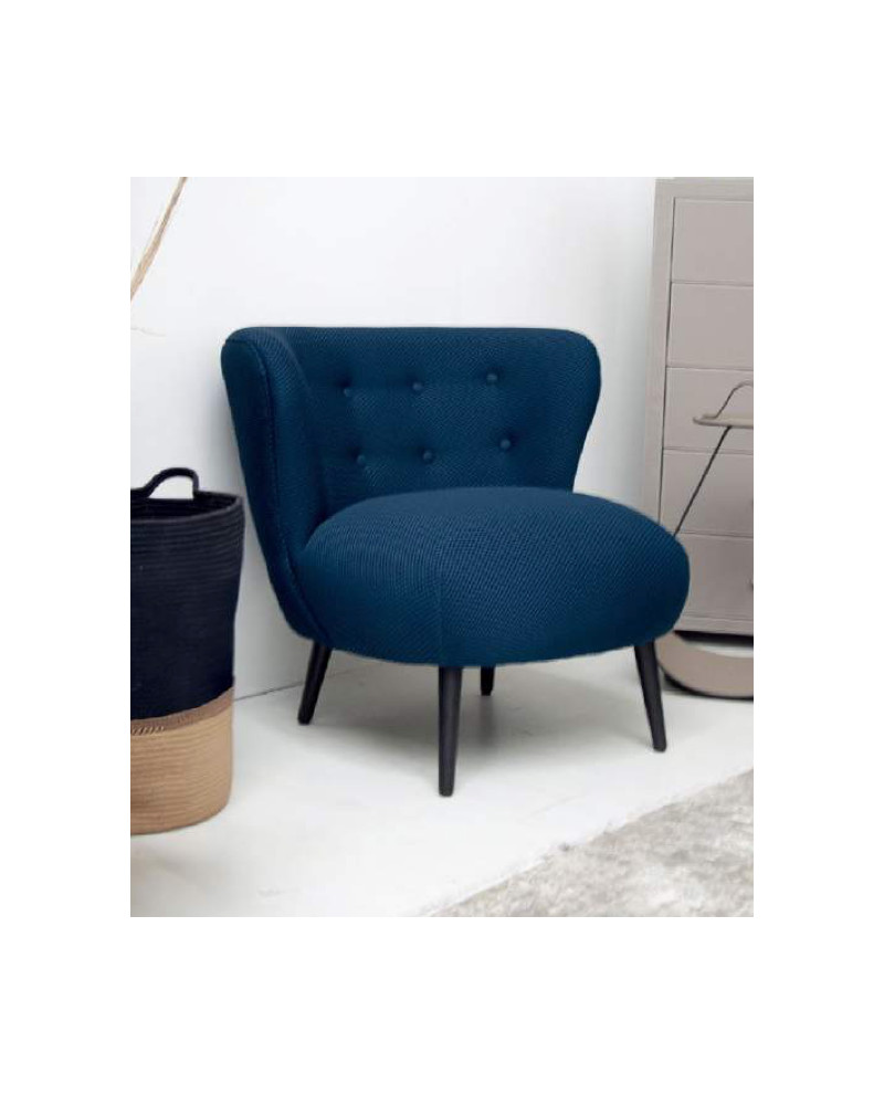 Structure en pin, mousse polyuréthane 35kg/m³, piètement en hévéa noir