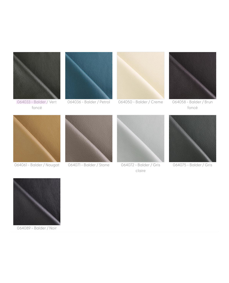Coloris : Blanc, Cognac, Gold, Bleu, Rouge, Jaune, Vin Rouge, Orange, Vert Foncé, Pétrol, Crème, Brun Foncé, Nougat, Stone, Gris clair, Gris ou Noir