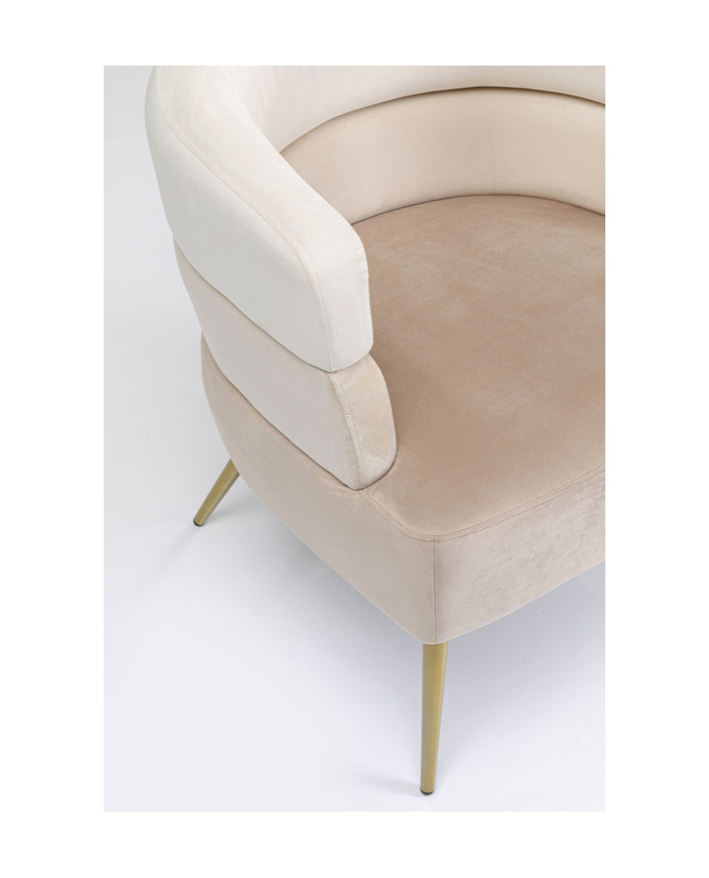 Sur ce fauteuil, vous êtes assis comme sur un trône de velours crème et or. Grâce à ses dimensions délicates, le joli fauteuil lounge peut facilement être combiné en duo. Cela rend chaque pièce instantanément plus confortable. Ceci est également assuré par les formes harmonieuses et le design particulier de ce fauteuil en velours extraordinaire.