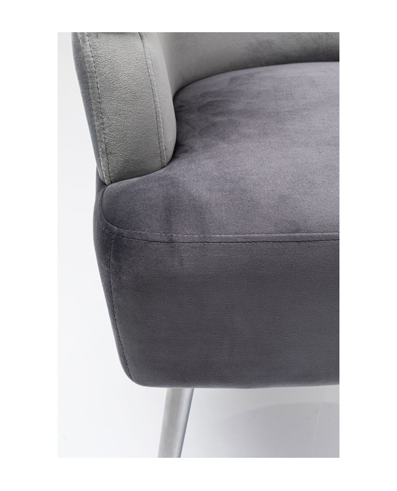 Enfin, un fauteuil en velours qui complète idéalement les appartements compacts ou les petits salons cosy – ses dimensions délicates le permettent