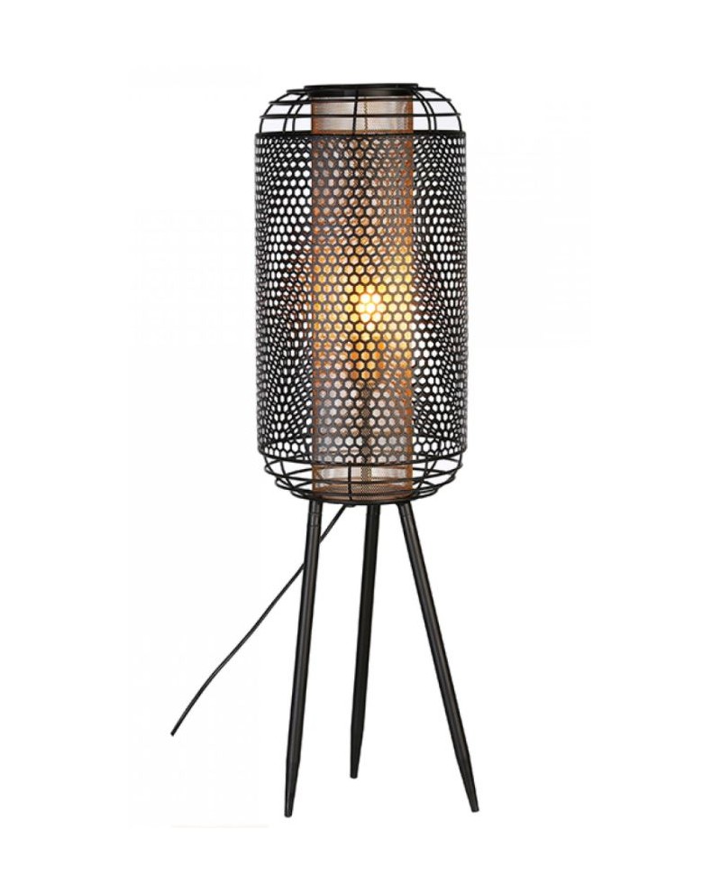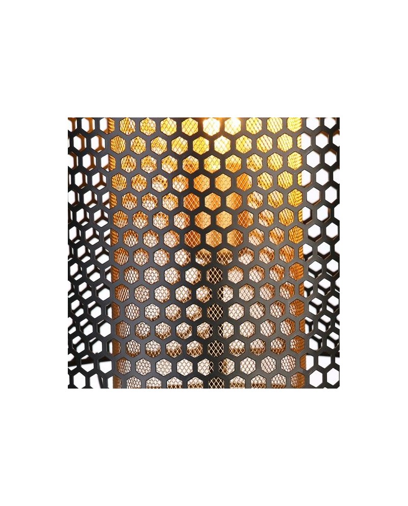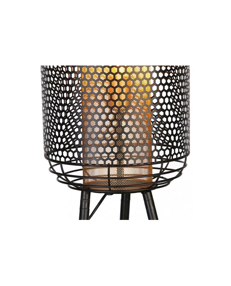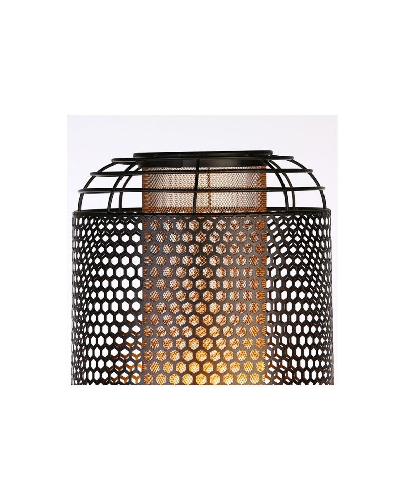 Lampadaire en métal perforé de couleur noir et doré. Eclairage 1 x E27 60W (ou plus si amp. LED).