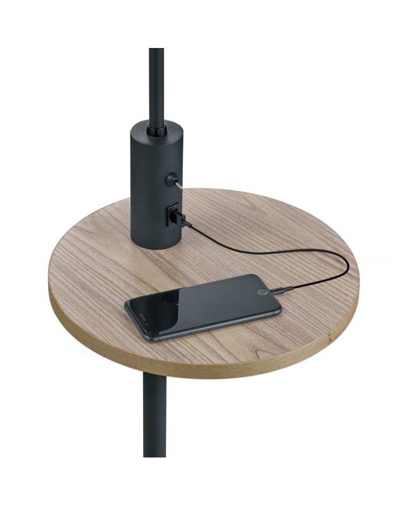 1 Abat-jour en tissu gris, interrupteur main et entrée USB de rechargement