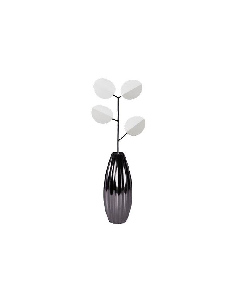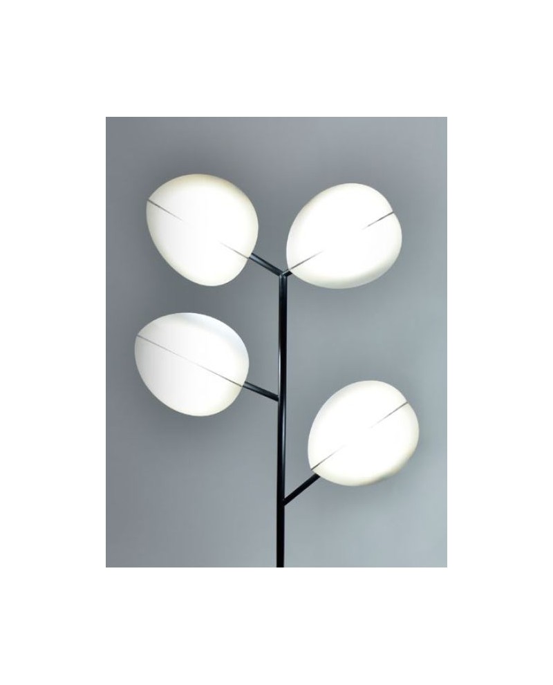 Lampadaire en céramique marron irisé avec abat-jours tissu décor feuilles, éclairage LED 4 x 9W - 4 x 1000 Lumen - 3000 K