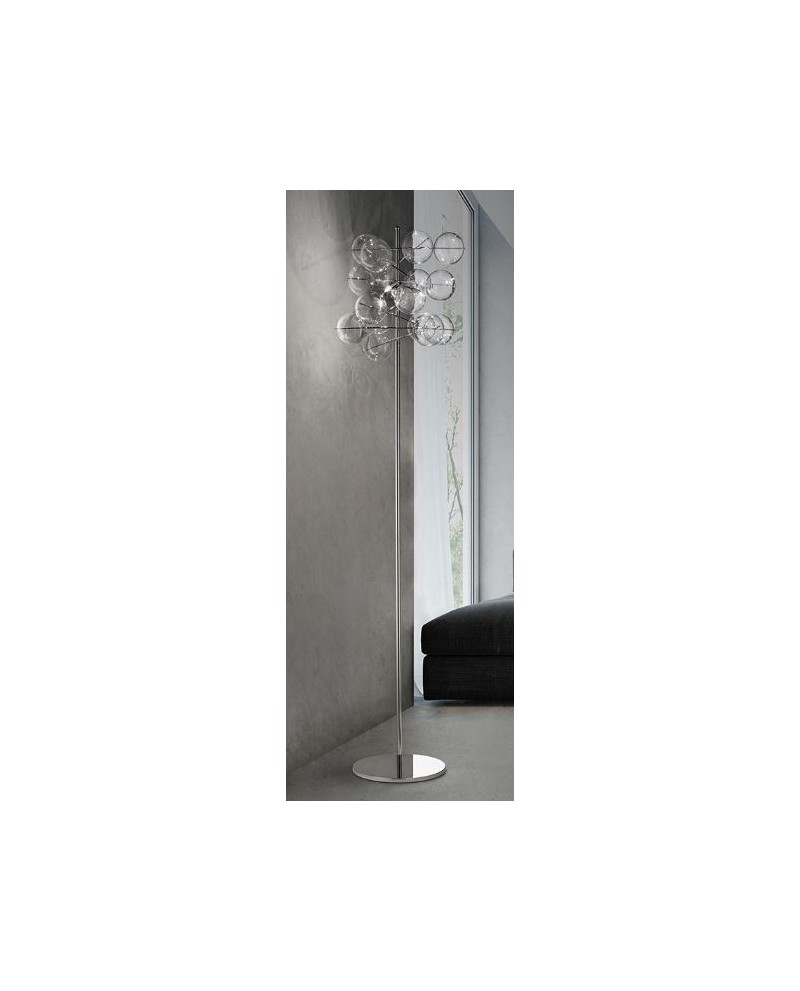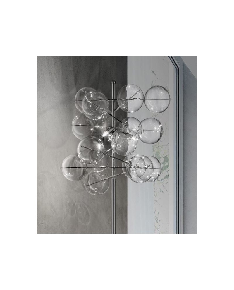 Lampadaire forme 16 sphères en verres soufflés transparents. Structure en métal chromé.