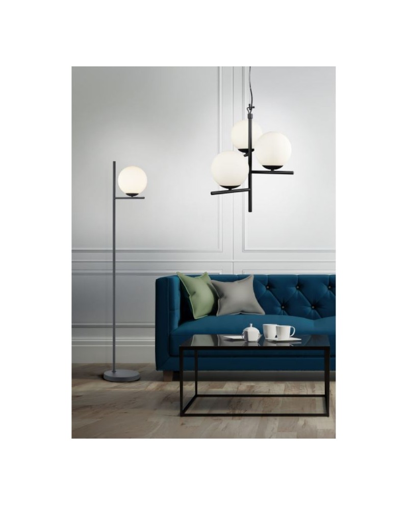 Lampadaire en métal et verre fumé ou blanc avec interrupteur pédale