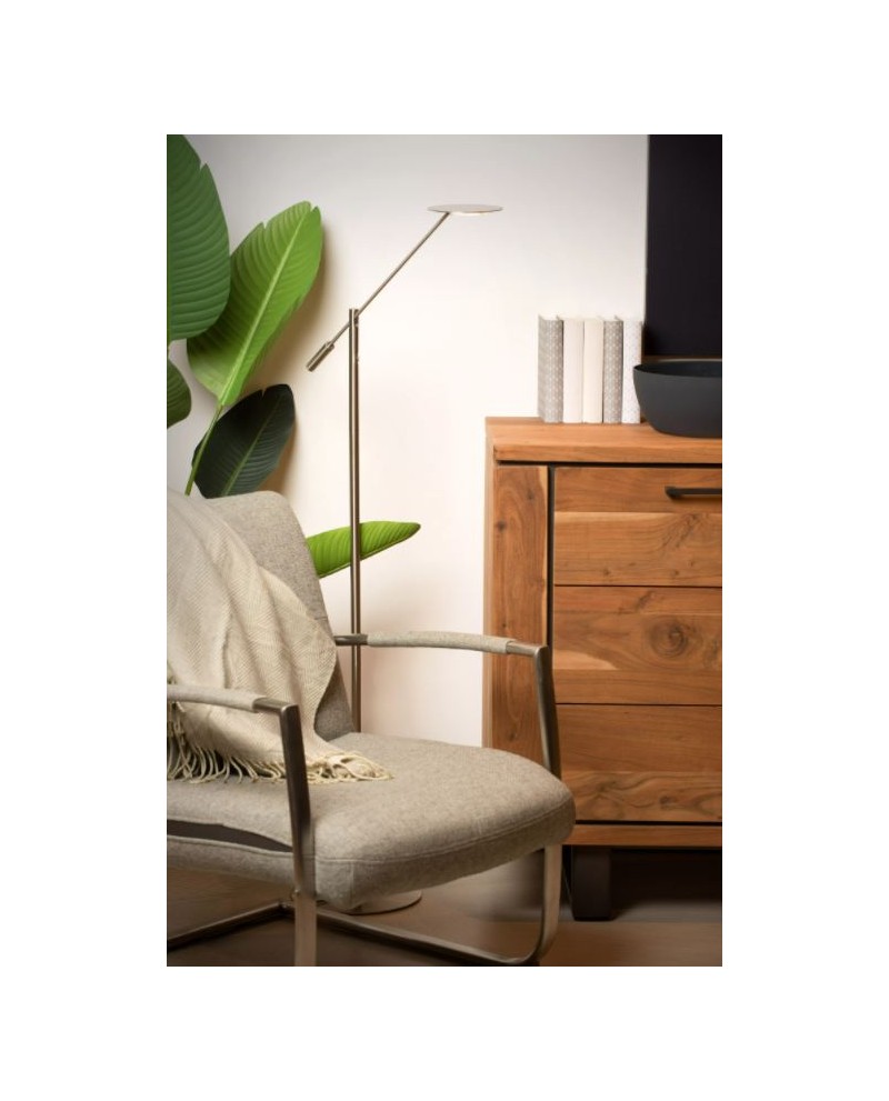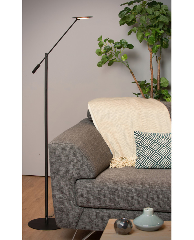 La lampadaire de lecture Anselmo ne se fait pas remarquer. Le design élancé et l'abat-jour fin prennent très peu de place. Ultrafine, elle s'élève à une hauteur de 110 à 140 centimètres. Juste en dessous de l'abat-jour se trouve une source lumineuse LED blanc chaud intégrée. De plus, cette source lumineuse est également dimmable. C'est vous qui choisissez l'intensité lumineuse et l'ambiance pour votre moment de lecture. Comment allumer et éteindre Anselmo ? À l'aide du bouton intégré en toute subtilité au socle de cette lampe de lecture. Bonne lecture !