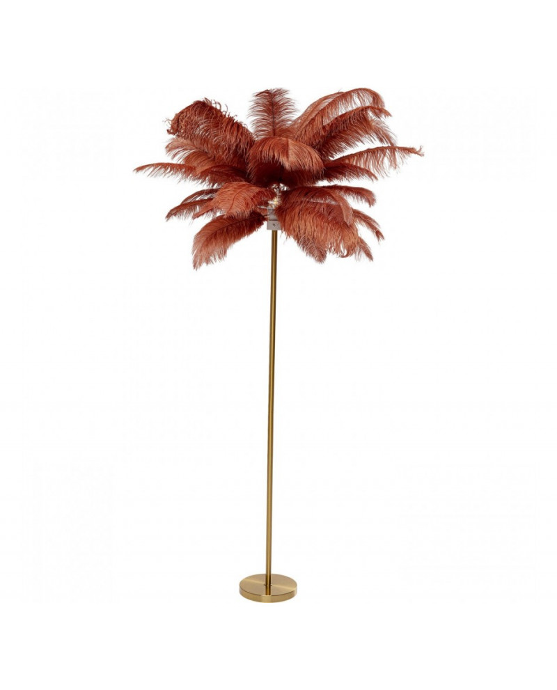 Lampadaire en acier revêtu de laiton et plumes d'autruche