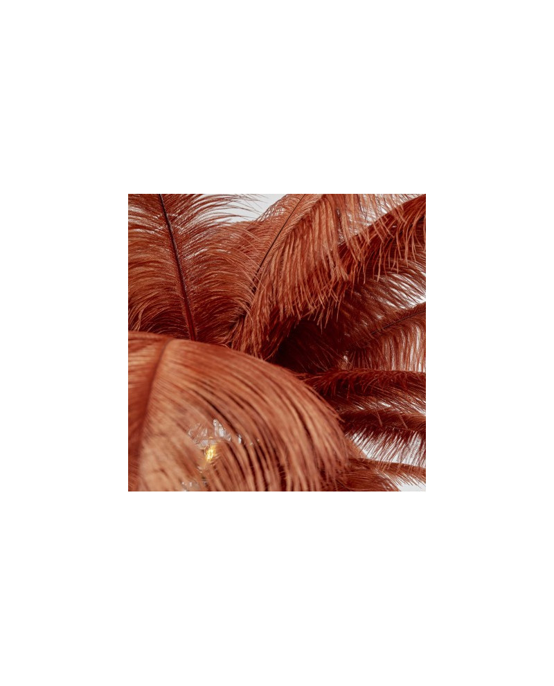 Plongez dans un univers burlesque avec ce lampadaire en plumes d'autruche monté sur un piétement en acier doré.