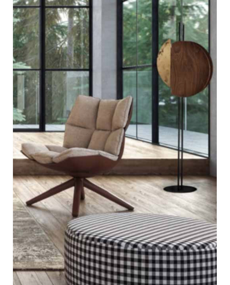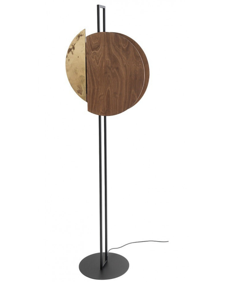 Fabriqué en bois et en acier avec une forme circulaire et originale, ce lampadaire est idéal pour compléter les pièces décoratives.