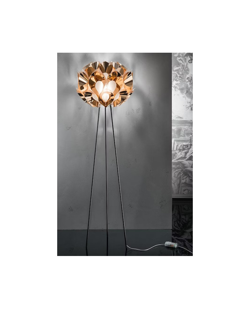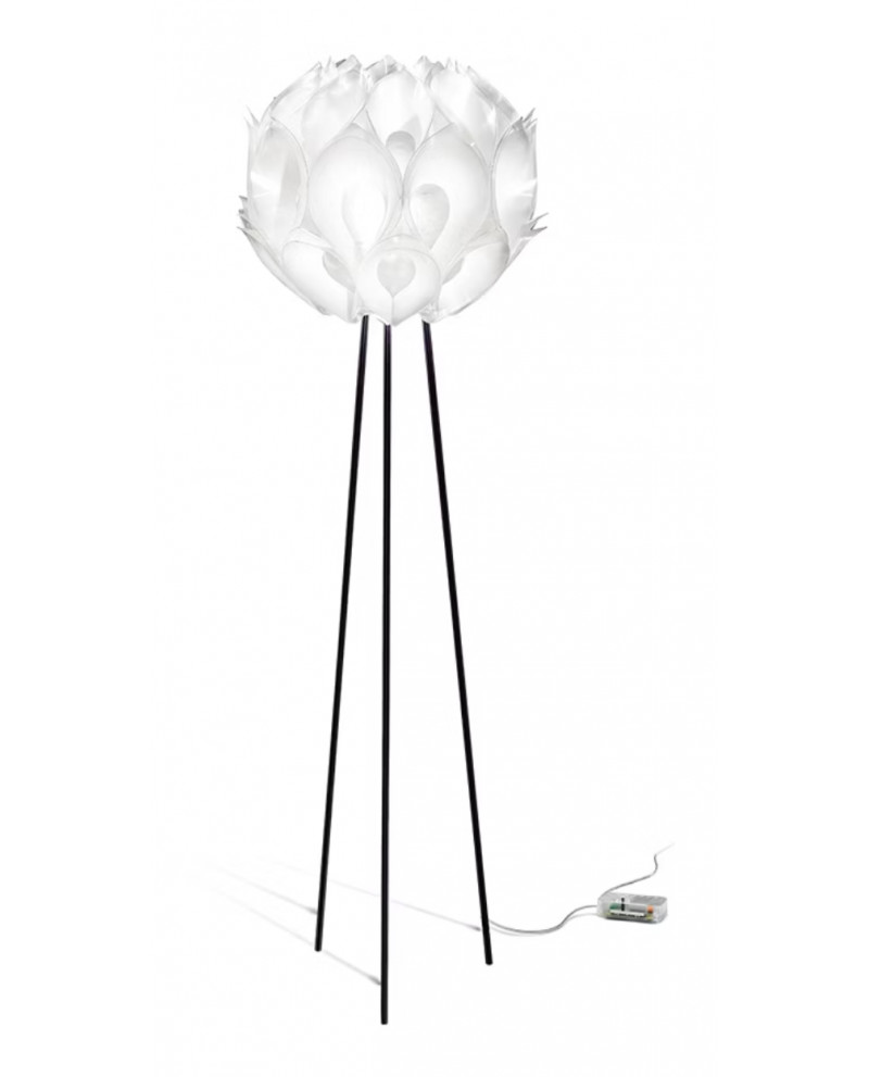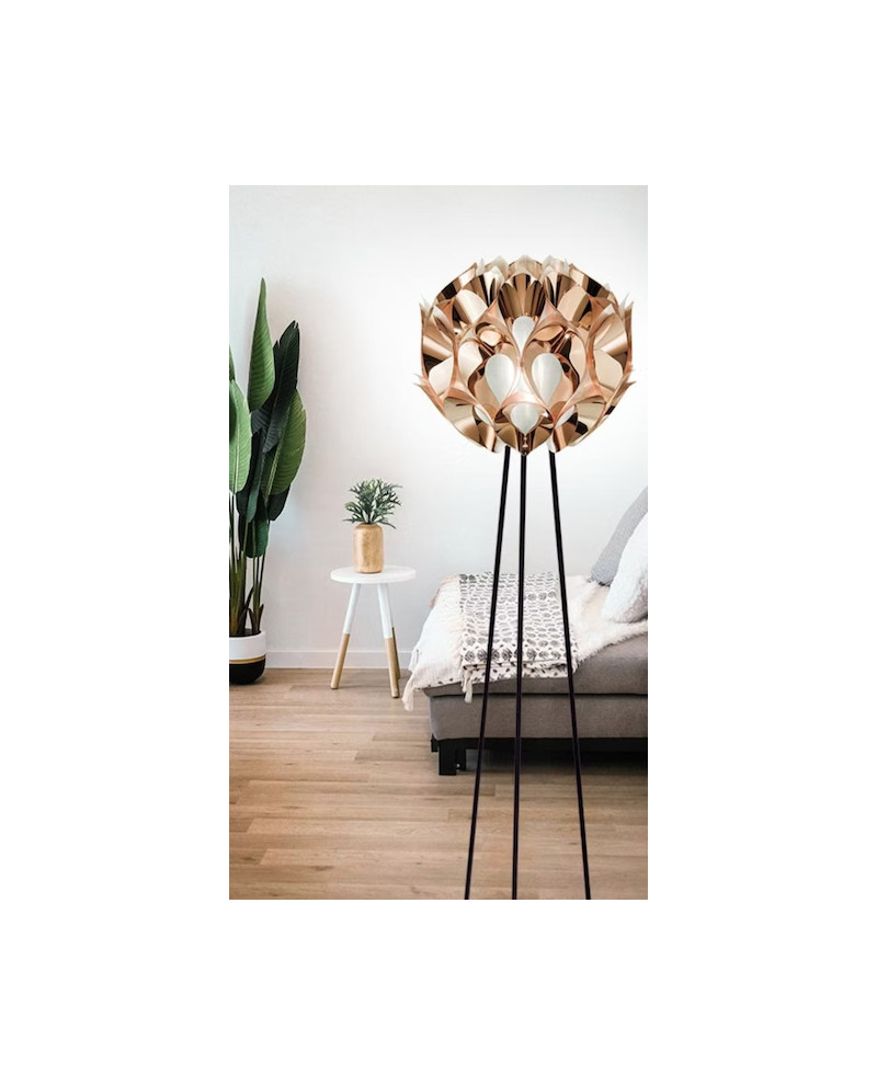 Lampadaire de soixante pétales, sphère de satin illuminée