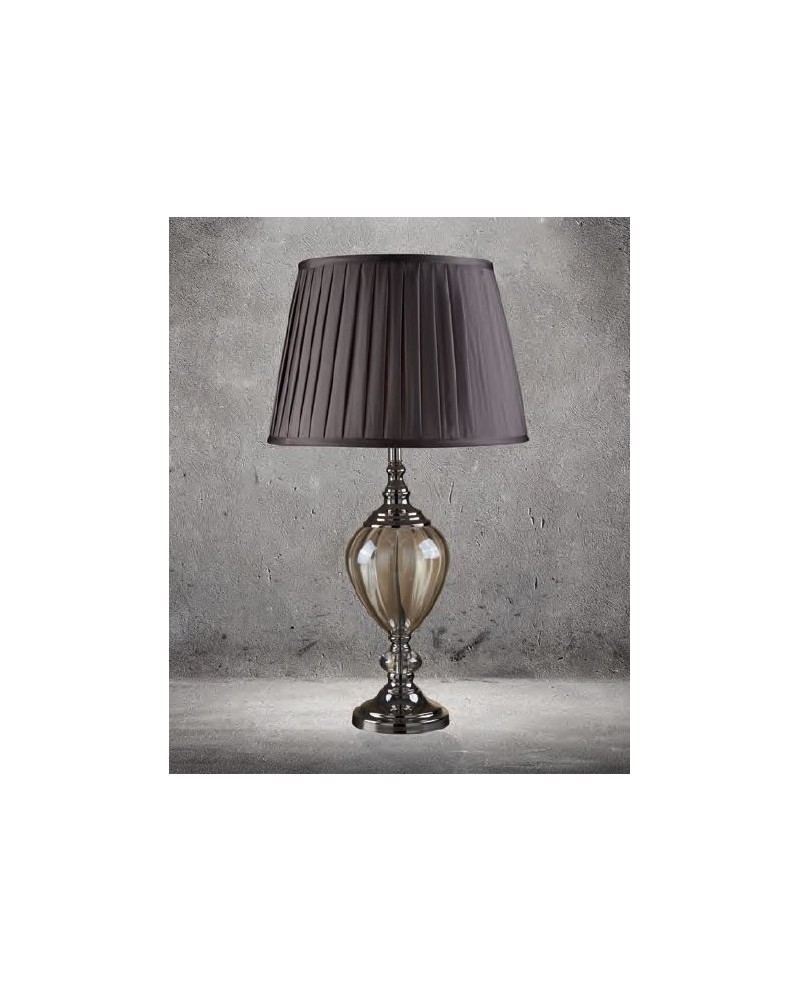 Lampe structure métal chromé et verre ambré, ABJ plissé marron.
