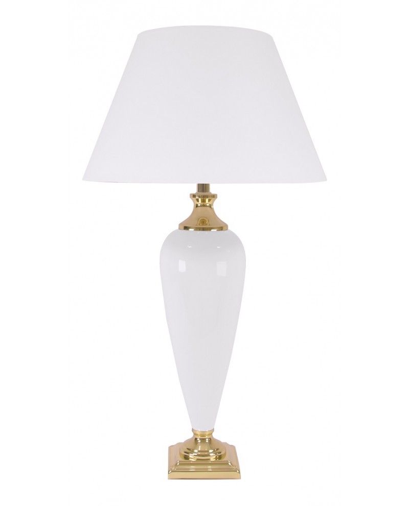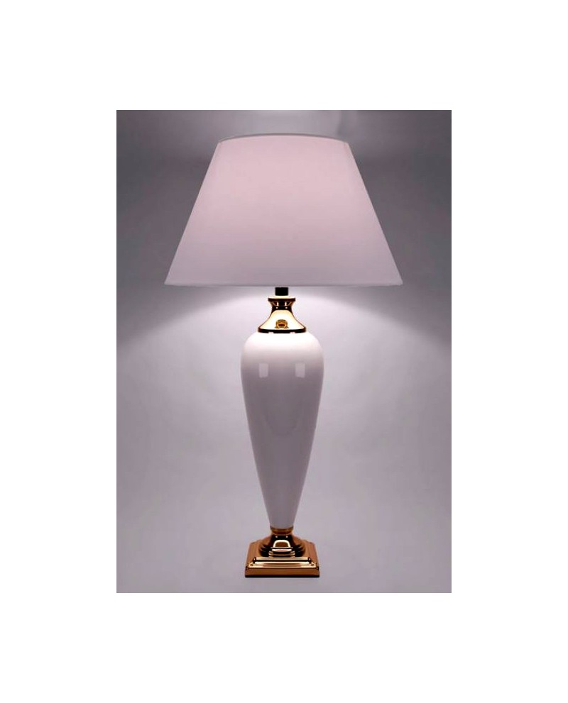 Lampe en céramique blanc et doré avec abat-jour tissu, éclairage 1 x E27 40W (ou plus si ampoule led).
