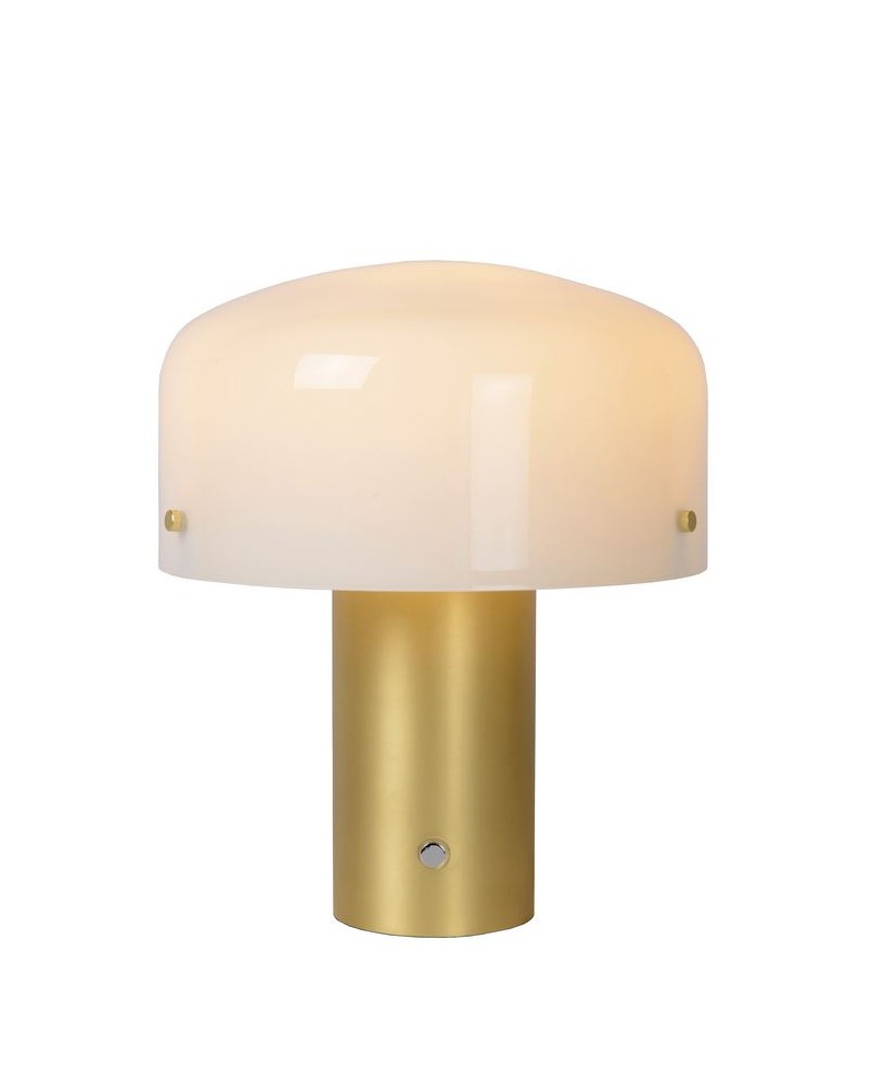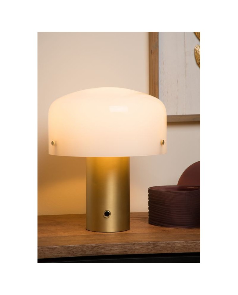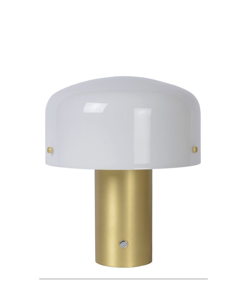 Lampe structure métal laiton doré mat, dôme en verre. Dimensions: 27 cm x 27 cm x 35 cm