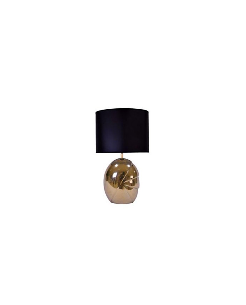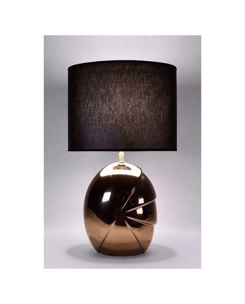 Lampe en céramique doré avec abat-jour tissu noir, éclairage 1 x E27 40W (ou plus si ampoule led).