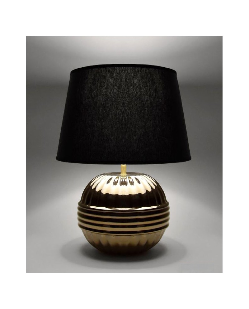 Lampe en céramique dorée avec abat-jour tissu noir, éclairage 1 x E27 40W (ou plus si ampoule led).