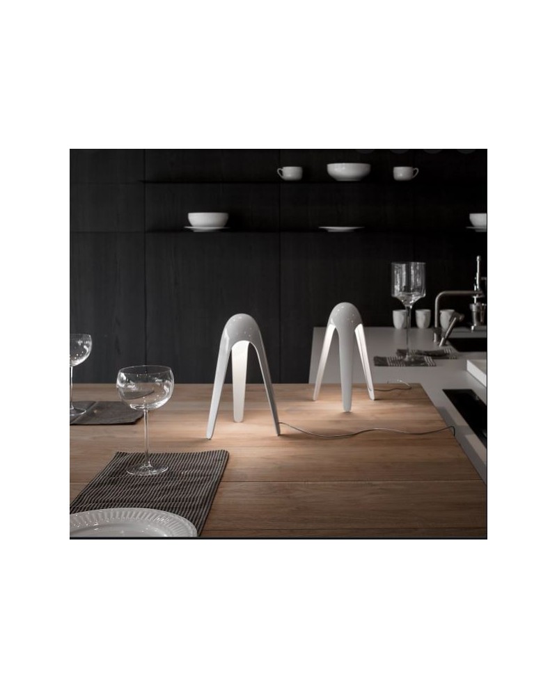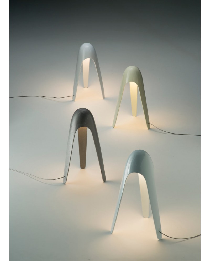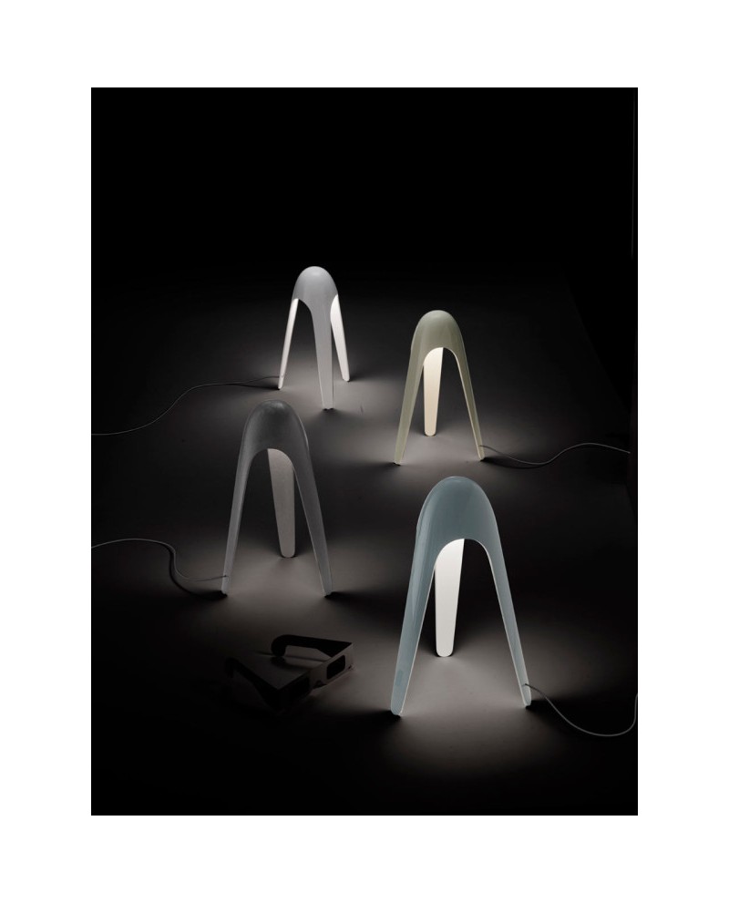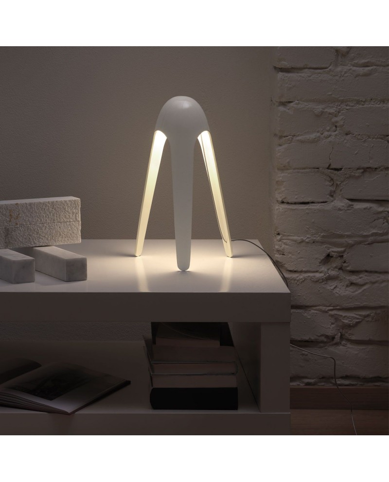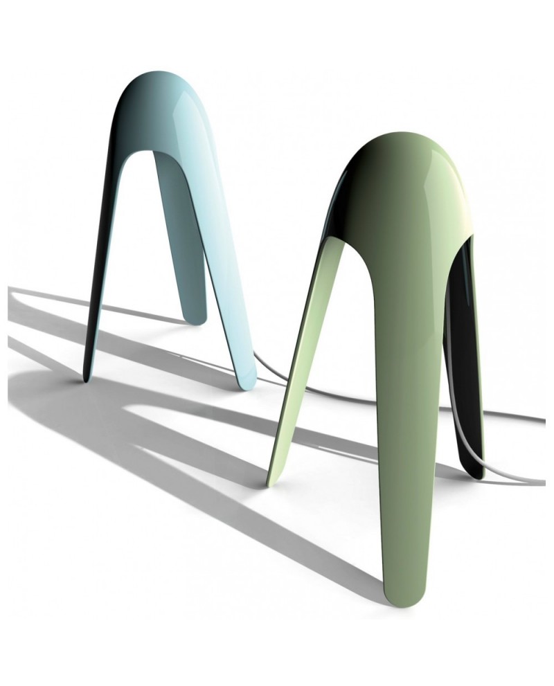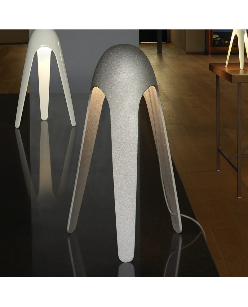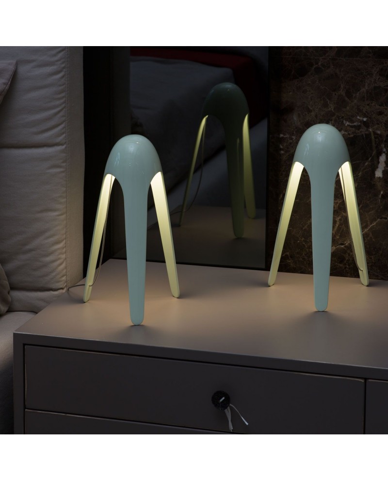 Le design futuriste de la lampe à trépied Martinelli Luce Cyborg fait penser à une méduse stylisée. Rashid s'est en fait inspiré des ovnis en phase d'aterrissage.