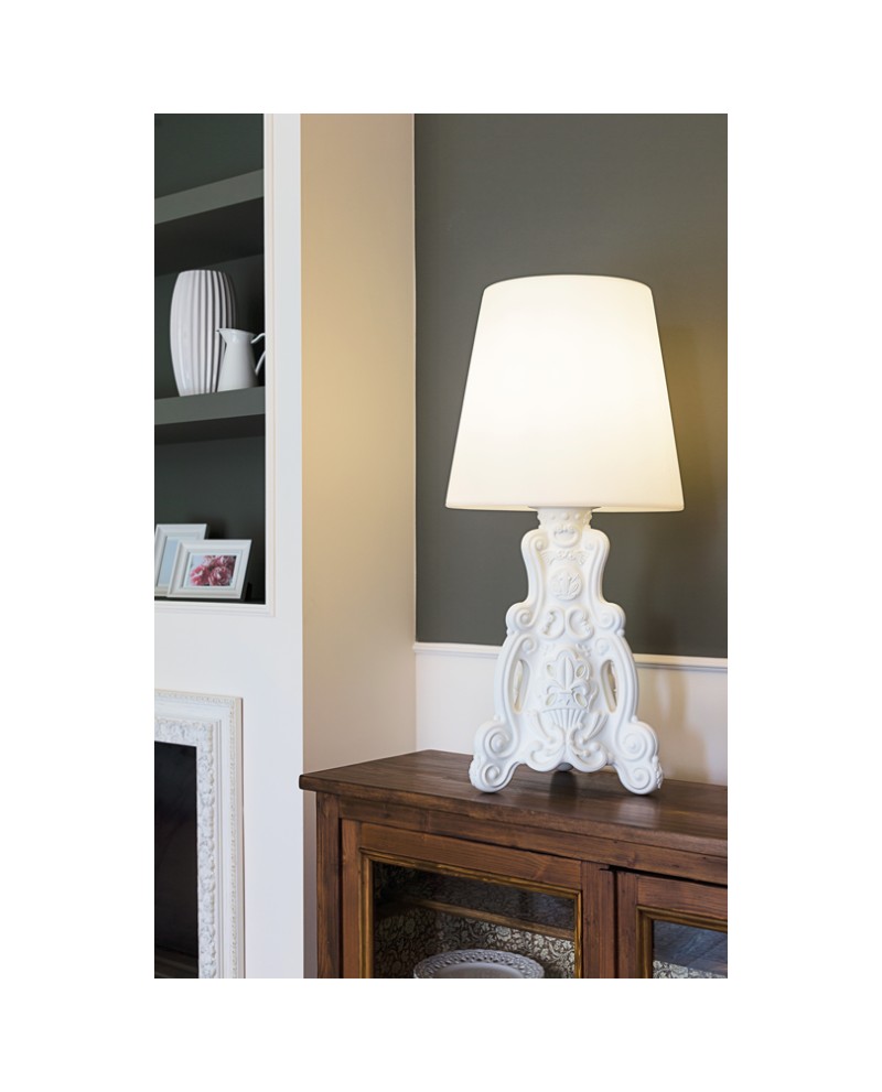 La lampe Lady of Love fait partie de la collection originale Design of Love, de Graziano Moro et Renato Pigatti. Au style incomparable, elle combine un look classique et élégant: créant des émotions, du charme et attire l’attention. Lady of Love, est une réinterprétation de la lampe baroque classique, avec un style simplifié et un design pur, son abat-jour est agréable au toucher telle une broderie.