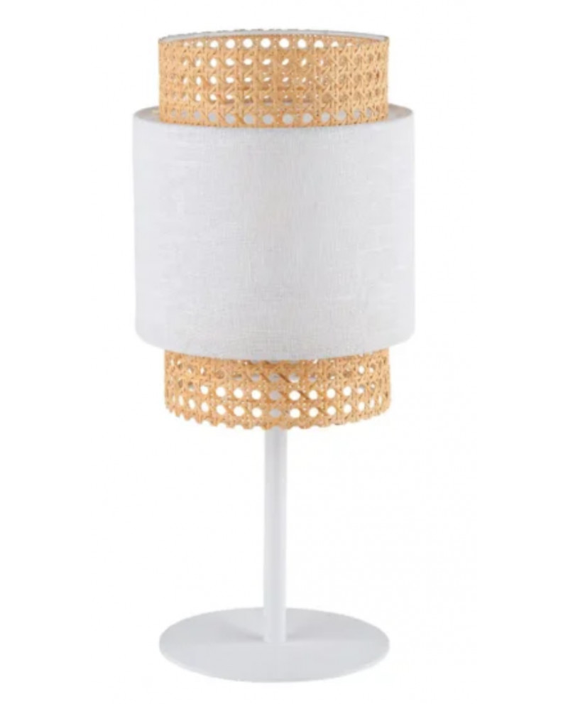 Lampe à poser en rotin et tissu.