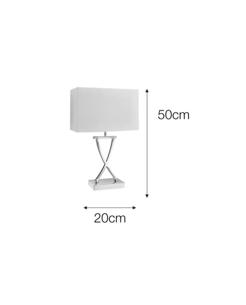 Lampe à poser en acier nickel satiné et abat-jour tissus.