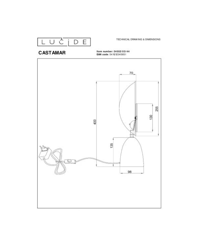 Vous avez toujours rêvé d’être sous les feux des projecteurs ? Castamar vous en donne l’occasion. Elle est certaine d'apporter de l'éclat à votre intérieur. Cette lampe de table en acier de haute qualité dégage une allure imposante tout en diffusant une lumière agréable et indirecte. Placez cette lampe d’ambiance dans un coin de la pièce, par exemple sur un buffet, et profitez immédiatement d’une atmosphère funky et rétro. Castamar est équipée d’une LED intégrée et se contrôle facilement via l’interrupteur sur le cordon. Efficace et éblouissante, tout ce que vous attendez de Castamar.
