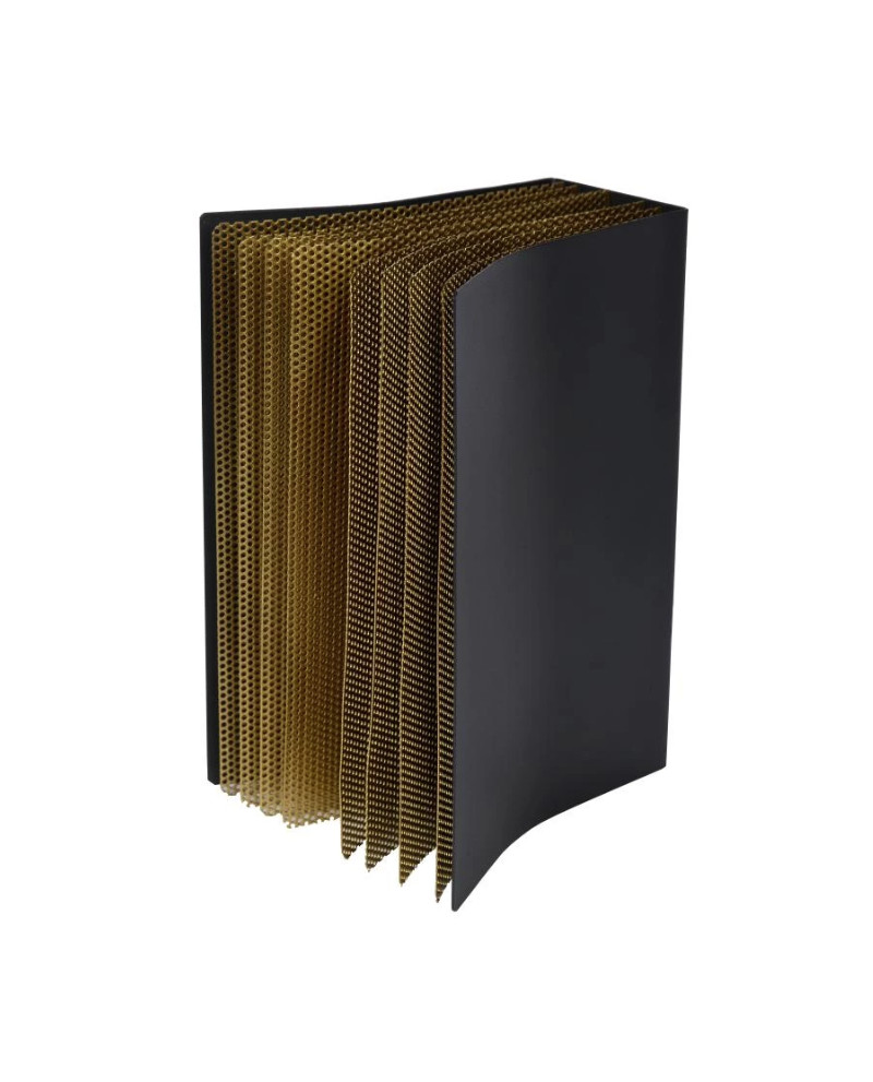Tel un livre qui révèle son histoire page après page, Extravaganza Livret déploie littéralement ses rayons de lumière avec sa structure en forme de livre. Sa couverture et ses pages sont en métal de haute qualité. Ces dernières sont en fait des plaques de métal perforées permettant de diffuser la lumière, tandis qu'une certaine forme de « transparence » permet de ne pas alourdir la table, mais de lui apporter une valeur ajoutée décorative aérienne. Cette lampe de table compacte est adaptée à une source de lumière LED. Vous souhaitez allumer ou éteindre Extravaganza Livret ? C'est facile grâce à l'interrupteur du cordon.