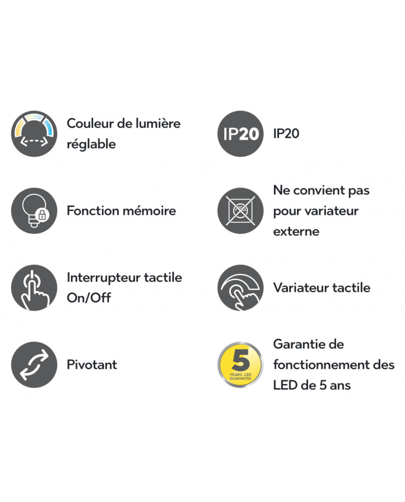Éclairage LED intégré : 1 x 6,5W, 620LM, 2700-4000-6500K