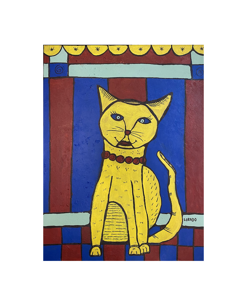 Peinture acrylique sur coton, décor patchwork, technique mixte.