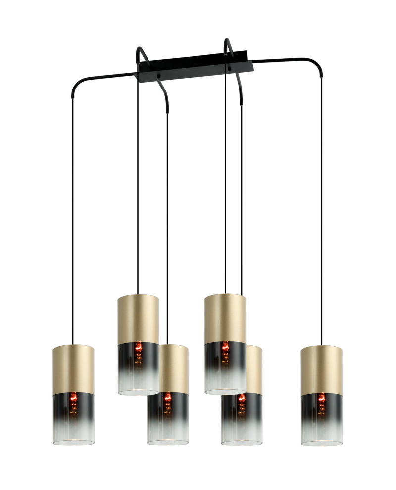 SUSPENSION MÉTAL-VERRE DORÉ SABLÉ 6 LUMIÈRES