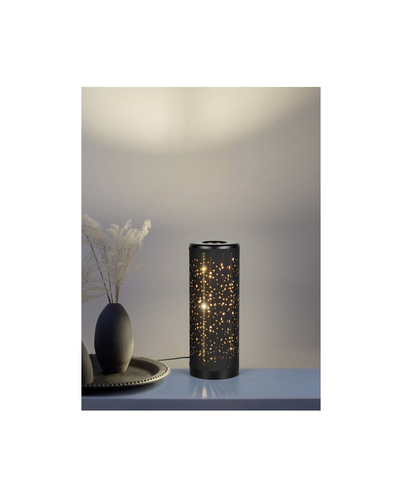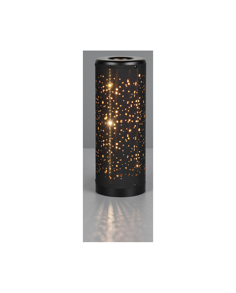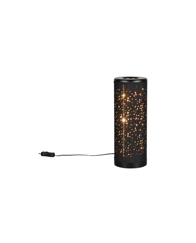 A travers l'écran en tissu avec des découpes, des effets de lumière dorés scintillent.