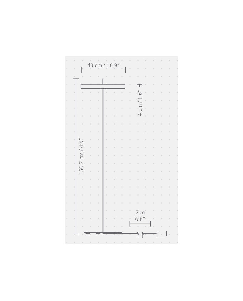 Le panneau LED est dimmable et son diffuseur blanc diffuse une douce lumière. La tige en laiton, traversant le lampadaire comme un axe vertical, renforce son allure épurée. En tournant sa partie supérieure, la lumière s'allume et s'éteint facilement.