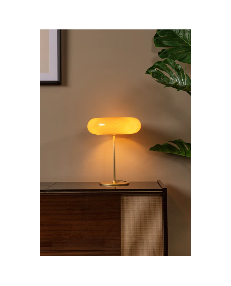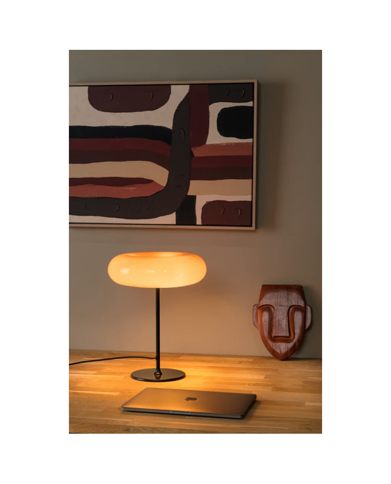 Vous aimez donner une touche sixties aux coins sombres de votre bureau, salon ou hall d'entrée ? Alors les formes rondes et audacieuses de Sentino sont faites pour vous. Ce lampadaire est composé d'un donut en verre laqué brillant, reposant sur un socle et un pied métalliques élancés. Sentino diffuse une lumière douce et pose le caractère de la pièce. Même lorsque ce lampadaire moderne est éteint, il reste l'élément phare de la pièce. Prêt à assumer ce choix de design audacieux ? Alors Sentino est la lampe qu'il vous faut.