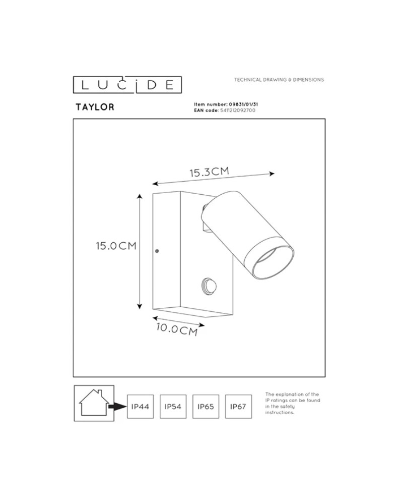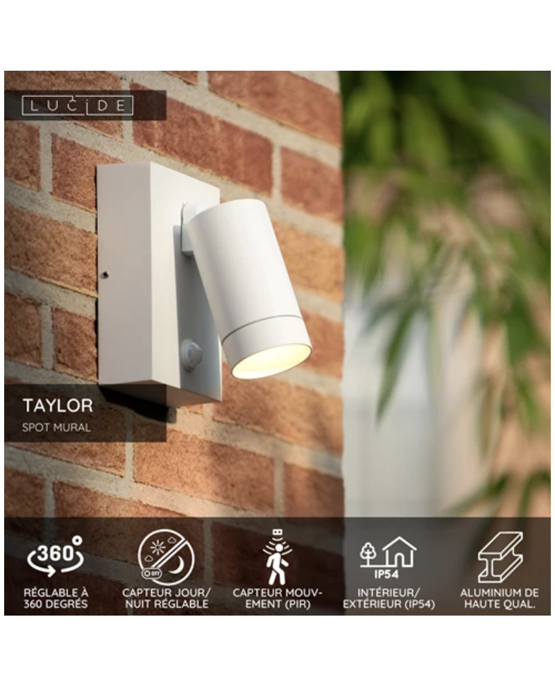 À l'extérieur aussi, vous souhaitez pouvoir compter sur un design élégant, des gadgets techniques et une qualité fiable. Taylor réunit ces propriétés dans un design moderne et intemporel. Ce spot mural en aluminium de haute qualité avec une ampoule pourra rapidement être fixé sur une façade. Les matériaux ont été soigneusement choisis pour une utilisation extérieure fiable et à long terme. Vous pourrez faire pivoter et incliner la source lumineuse jusqu'à ce qu'elle soit dans la bonne position. Grâce au capteur de mouvement subtilement intégré, Taylor est également très économique et ne révèlera ses secrets qu'en cas de besoin.