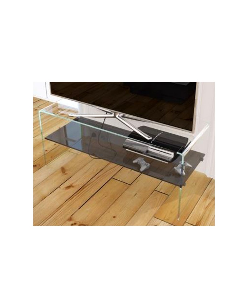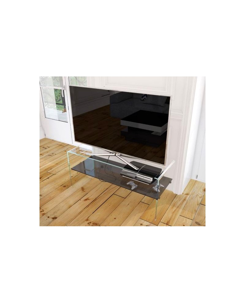 Le meuble TV Atena est dans l'air du temps. Il peut s'intégrer facilement dans un intérieur classique ou dans un intérieur contemporain. Il sera de toute manière discrète avec sa structure en verre extra-clair. Il est présenté ici avec un verre gris fumé.
