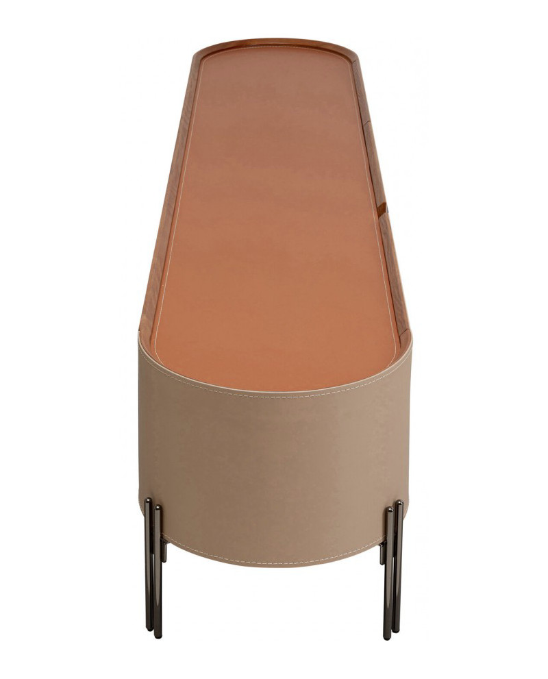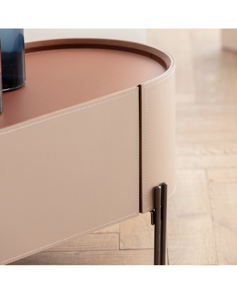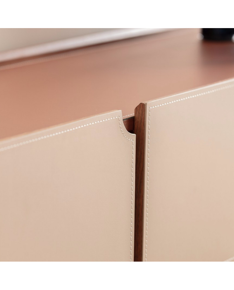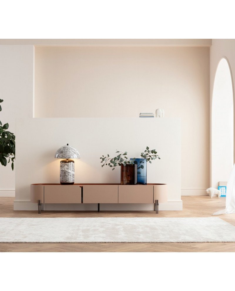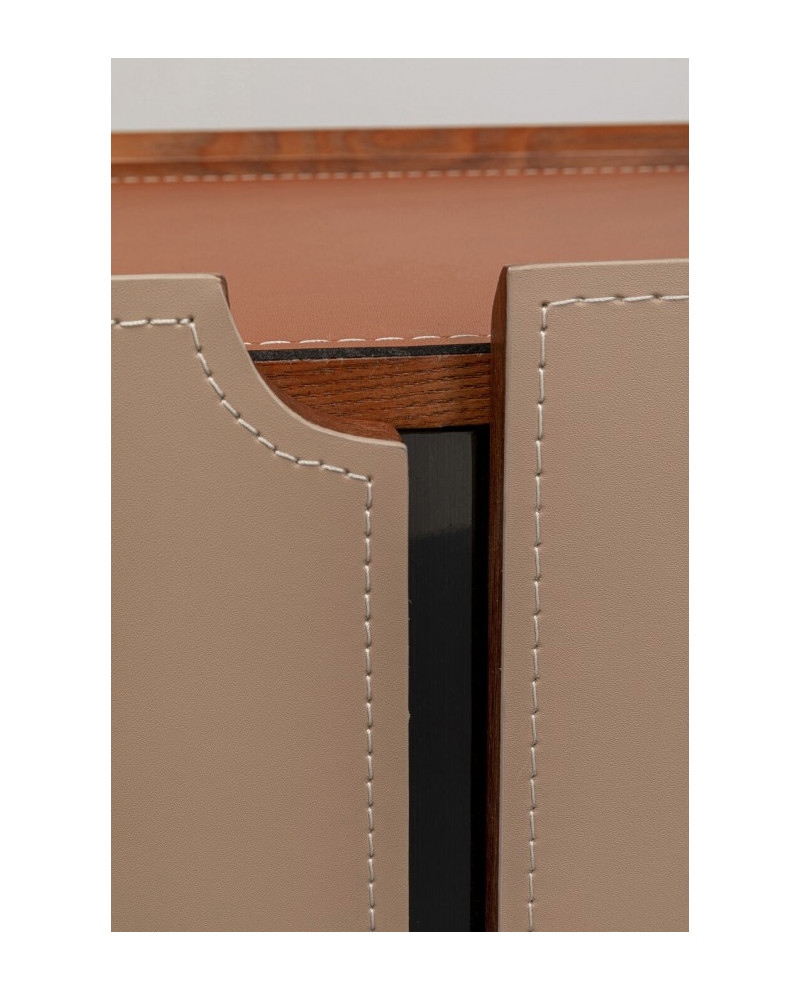 Avec son mélange de tons beige et orange doux et son élégant aspect cuir, ce meuble tv est une pièce maîtresse. Ses fines coutures contrastées et ses pieds en acier délicats lui confèrent une légèreté moderne qui s'harmonise parfaitement avec les intérieurs chaleureux. Ses trois tiroirs pratiques offrent un vaste espace de rangement pour vos appareils électroniques, vos livres ou vos objets de décoration élégants.