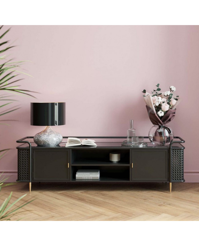 Meuble tv en acier et verre