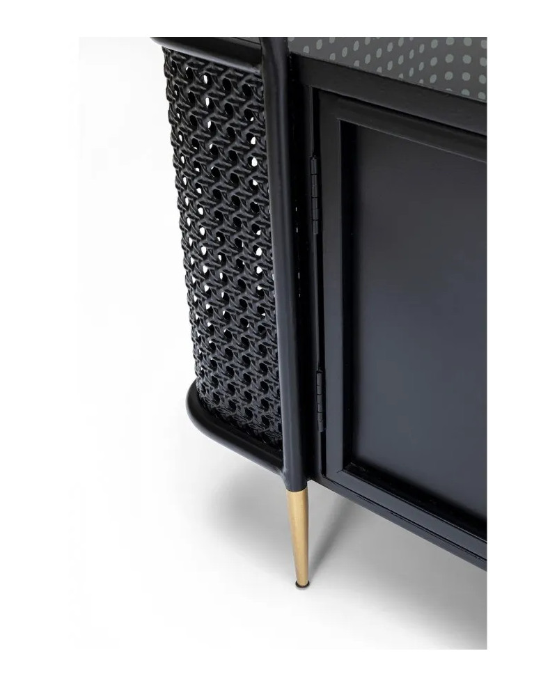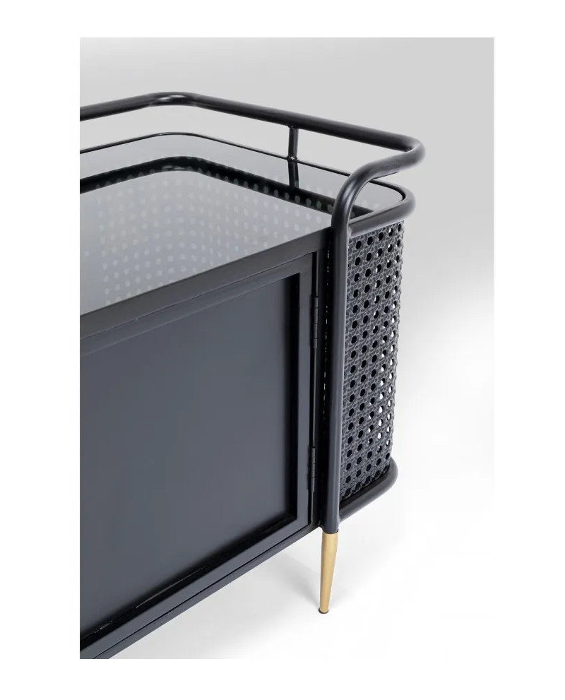 La collection de meubles Fence élargit l'univers stylistique du mobilier en acier. Loin de son look industriel traditionnel et robuste, cette ligne se distingue par son élégance moderne. Trois ingrédients, jusqu'alors inconnus dans le mobilier d'atelier, créent la surprise. La maille viennoise orne les façades. Chez Fence, les surfaces lisses en acier laqué et en verre alternent avec des passages structurés et perméables, également en acier, à l'aspect vannerie. Le design de la collection Fence est également reconnaissable grâce aux lignes épurées des pieds et des cadres, qui se terminent par une sorte de garde-corps, rappelant celui du pont d'un navire. Enfin, les poignées et les pieds en laiton apportent une touche rétro élégante.