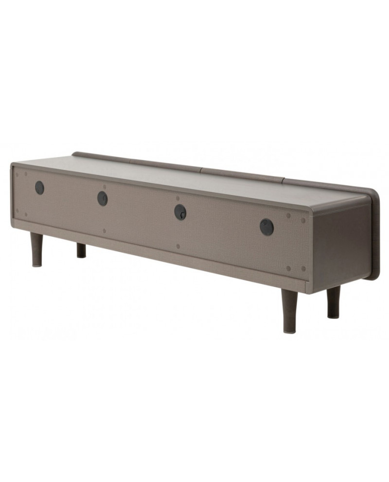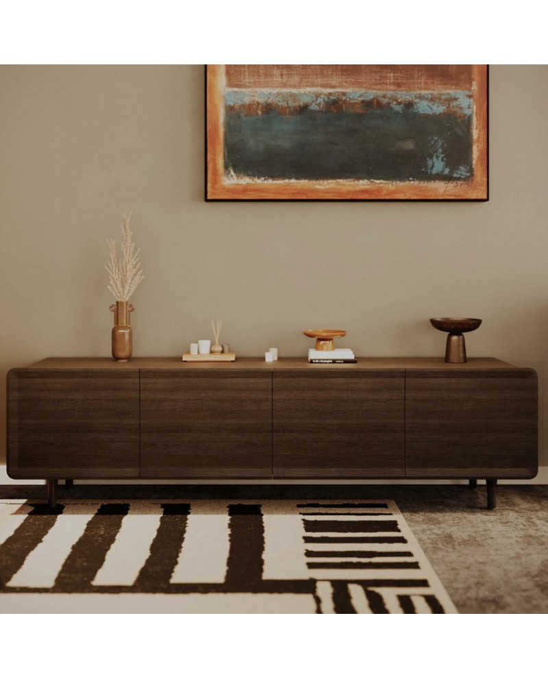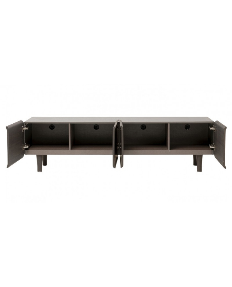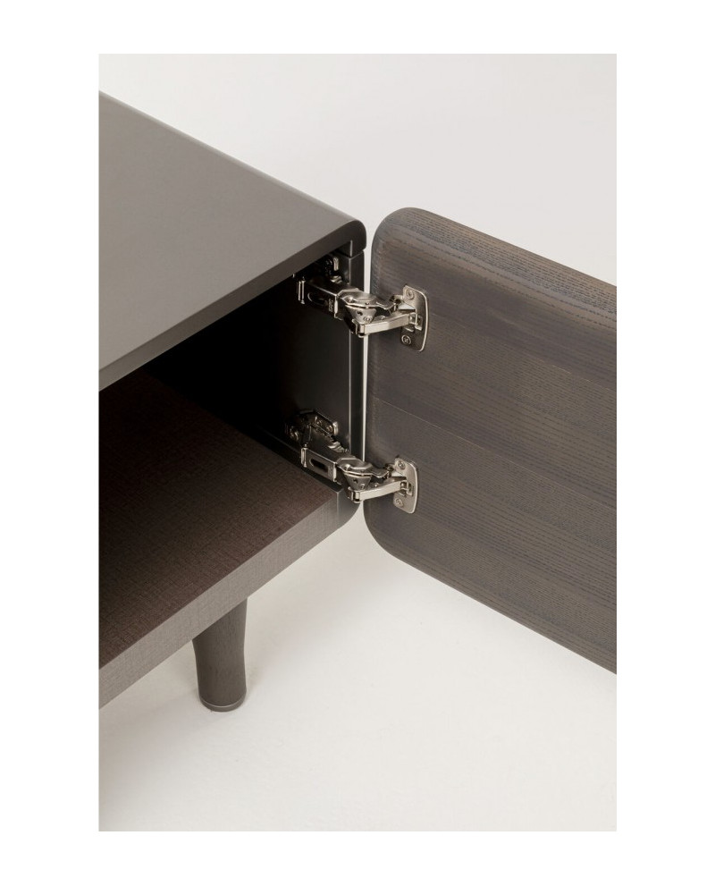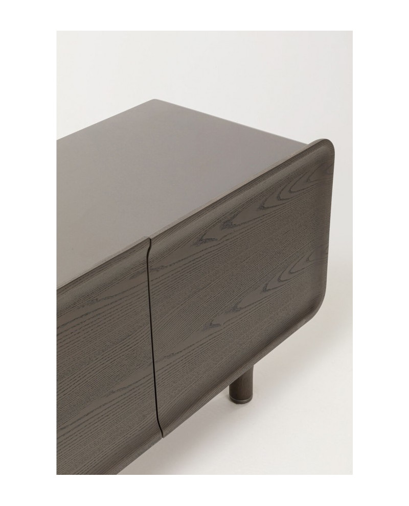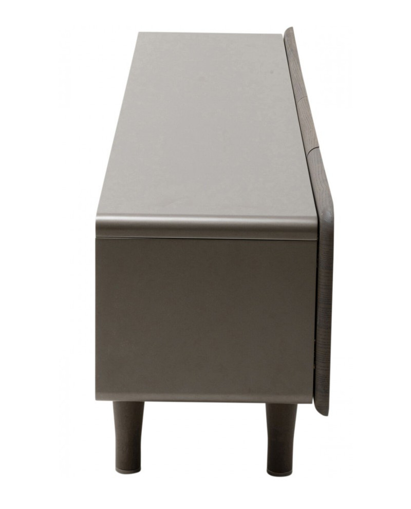 Ajoutez une touche de luxe moderne à votre salon avec notre buffet bas design exclusif Divine. Son corps aux lignes épurées, d'un brun froid, et ses angles légèrement arrondis s'harmonisent parfaitement avec sa surface aspect métal mat. Sa façade en frêne massif confère à ce buffet un charme naturel et sublime tout espace de vie. Ses compartiments spacieux, dotés d'une fermeture amortie pratique, offrent un espace de rangement à la fois esthétique et fonctionnel.