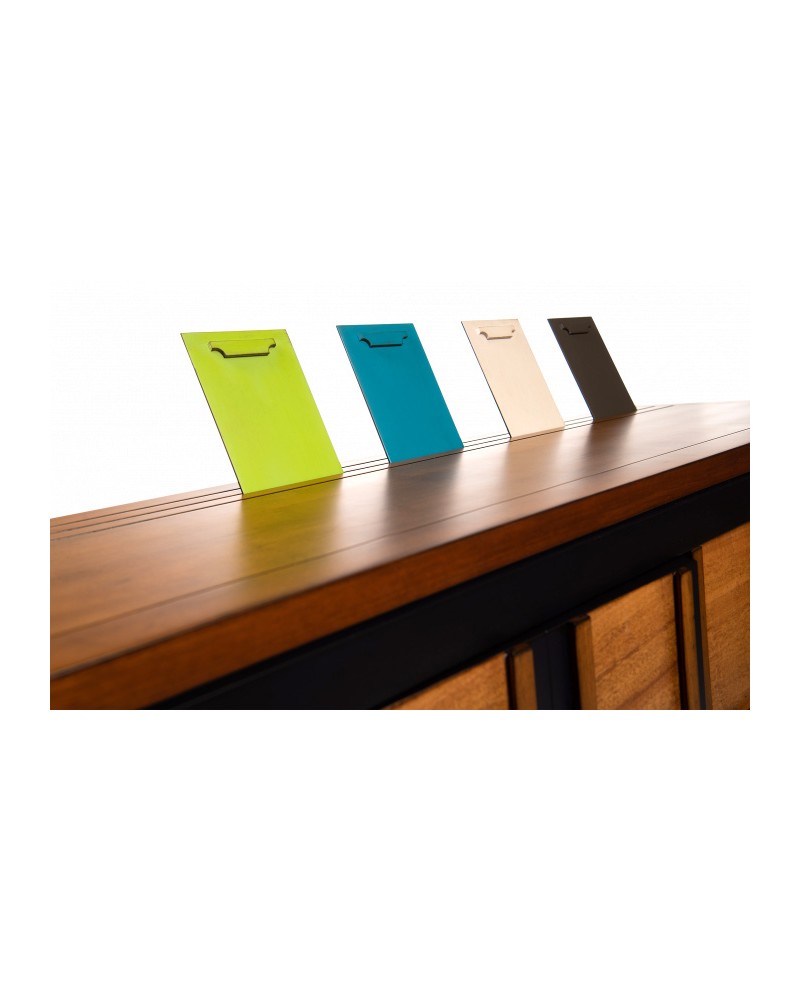Une collection inspirée des meubles de métier, caractérisée par des lignes sobres et élégantes. Les plaquettes amovibles donnent un éclat gai et coloré et permettent de personnaliser son meuble. Design: Didier Versavel